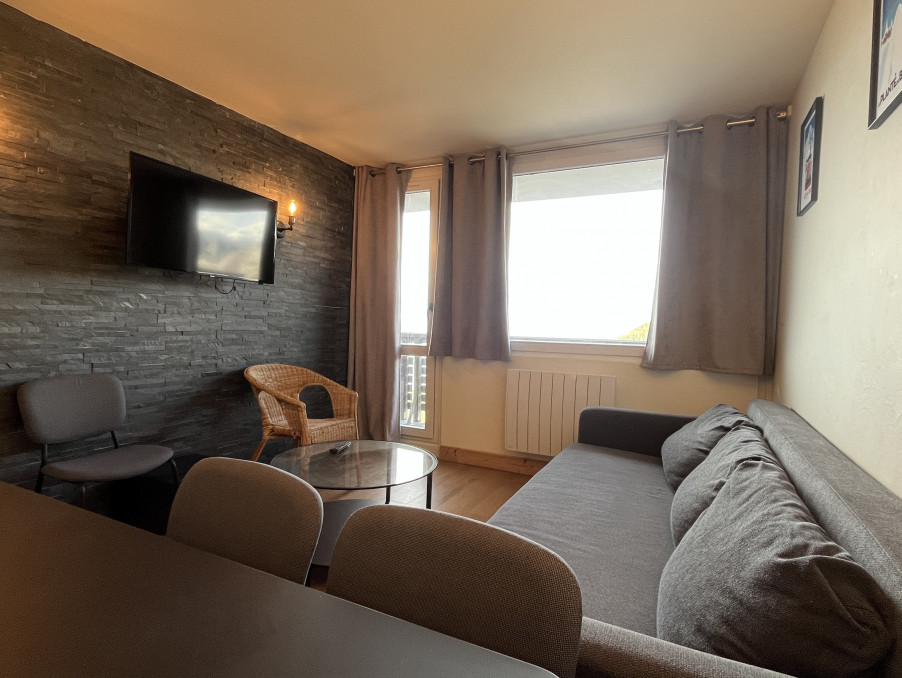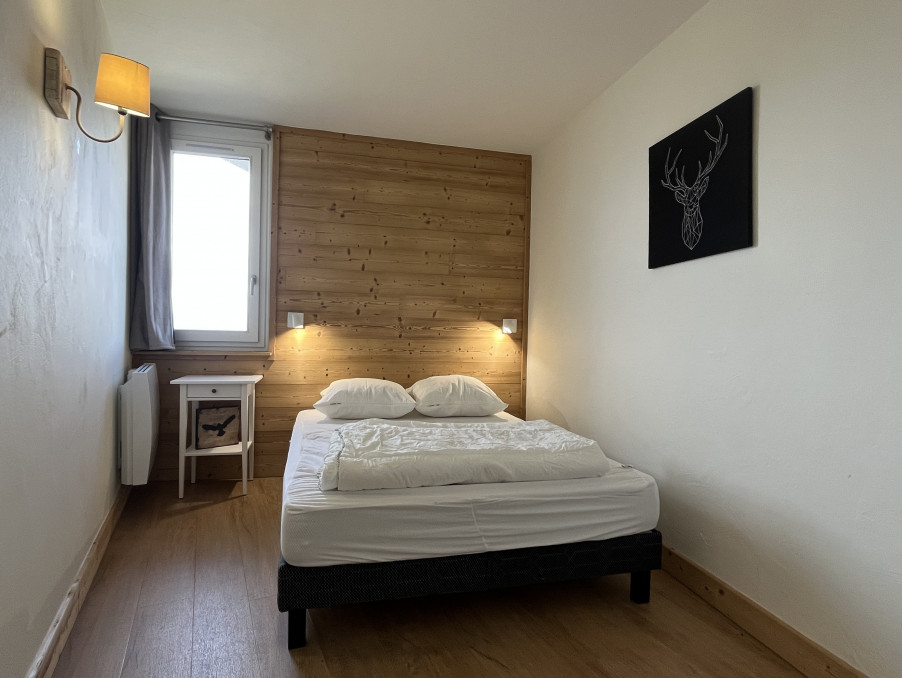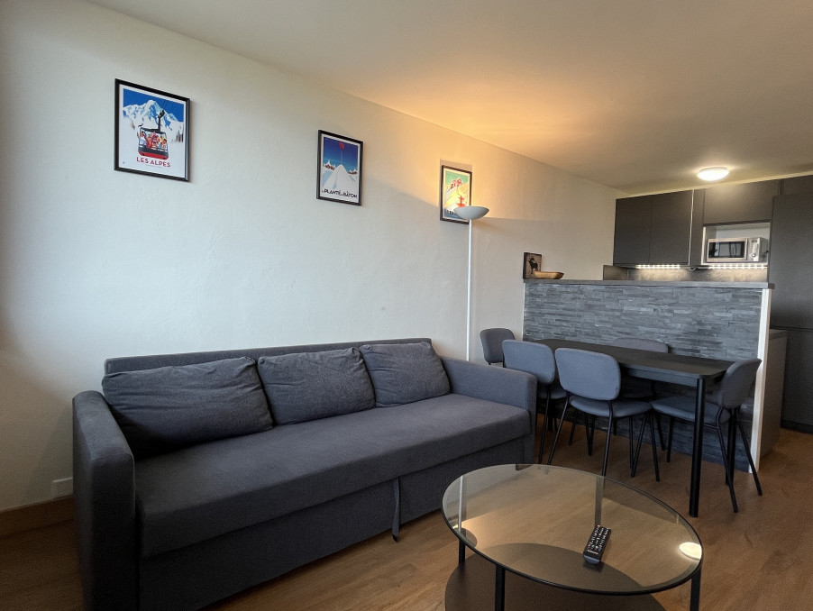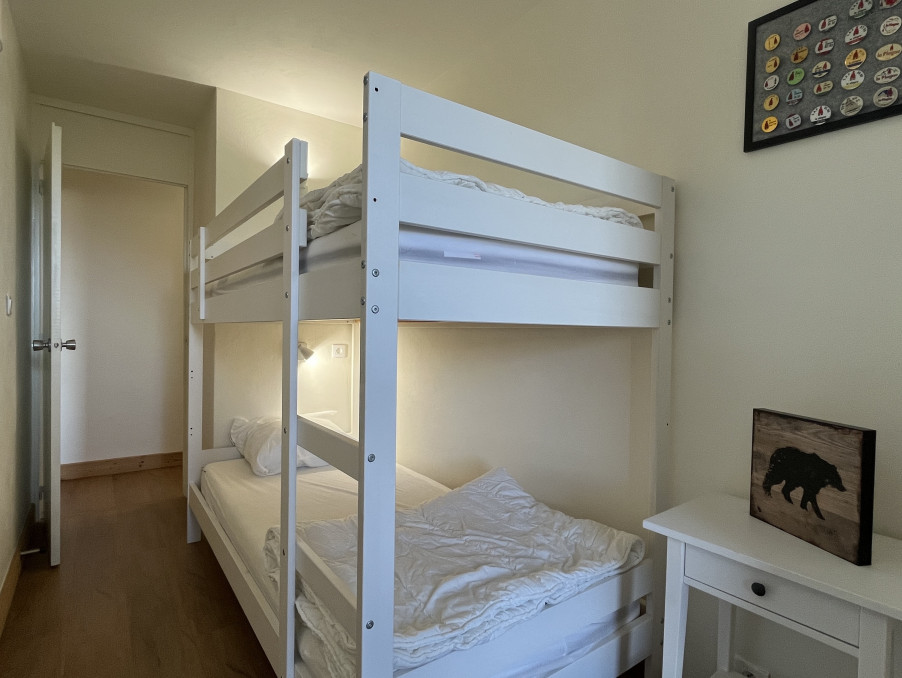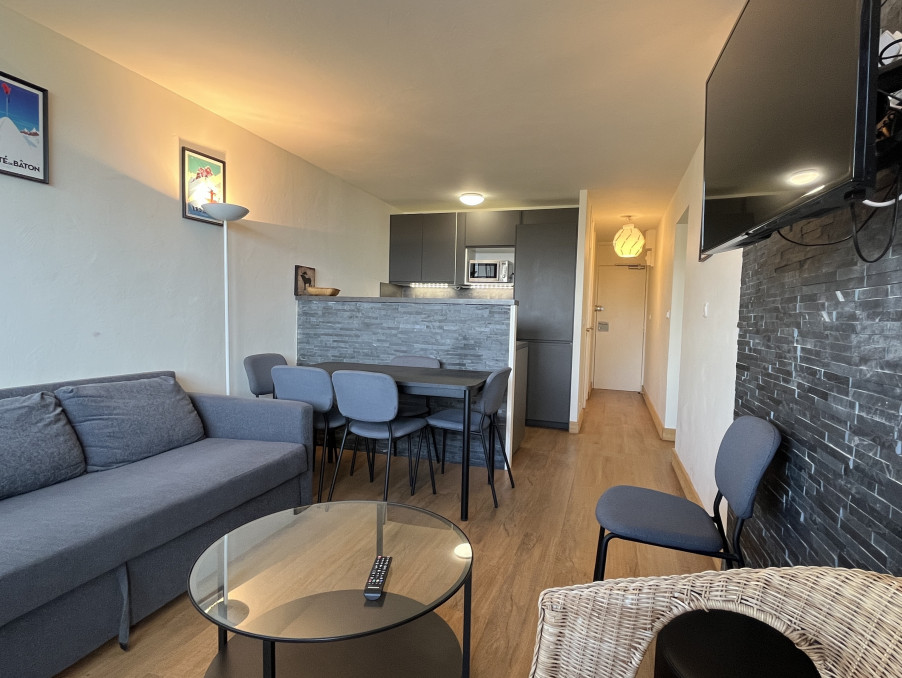 Bel Appartement 3 Pièces de 45M² entièrement rénové pour 6 personnes bénéficiant d'une chambre double, une chambre avec 2 lits superposés , une cuisine équipée ouverte sur séjour, une salle de bains avec WC . Un grand balcon avec vue sur le Mont-Blanc