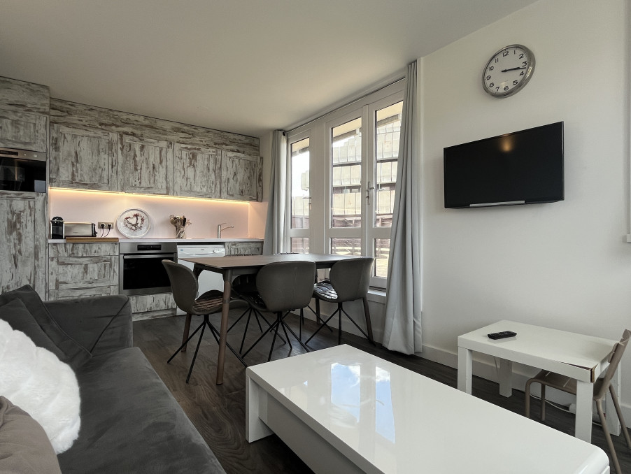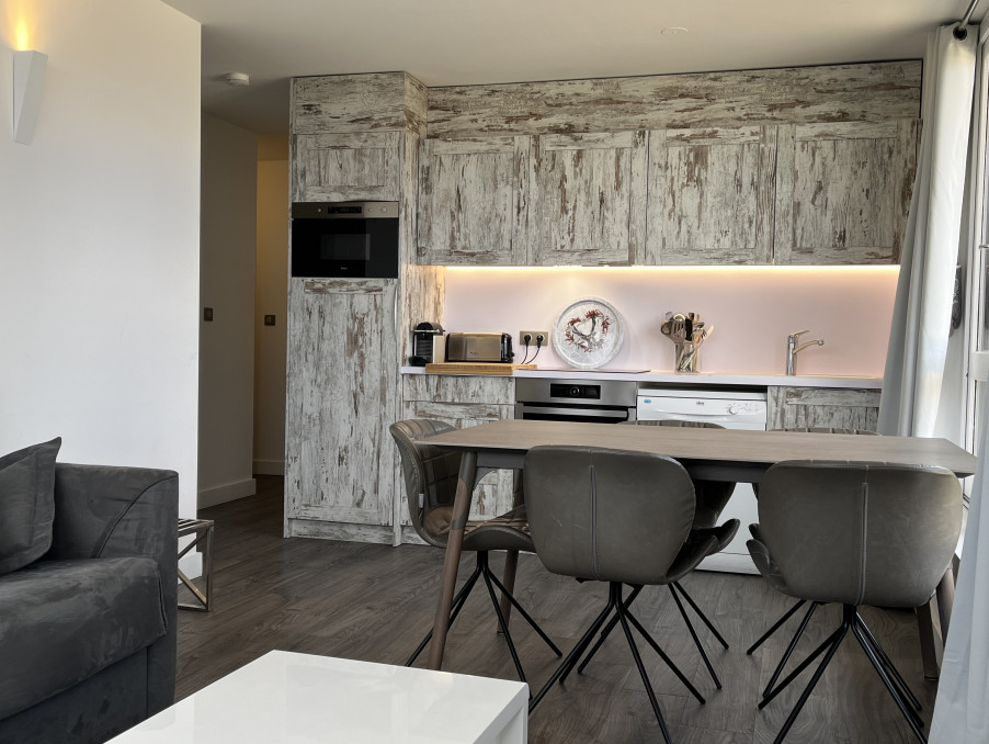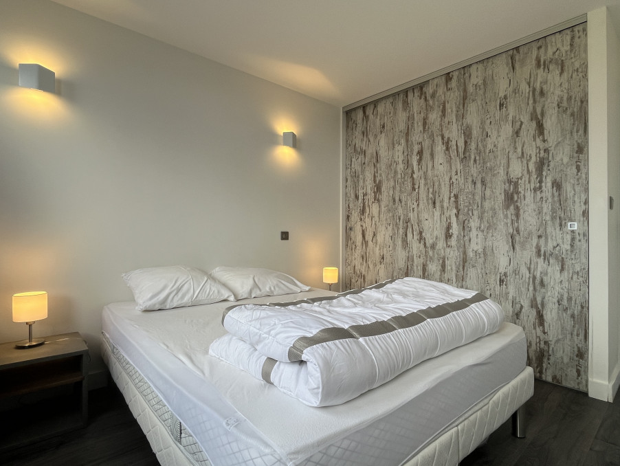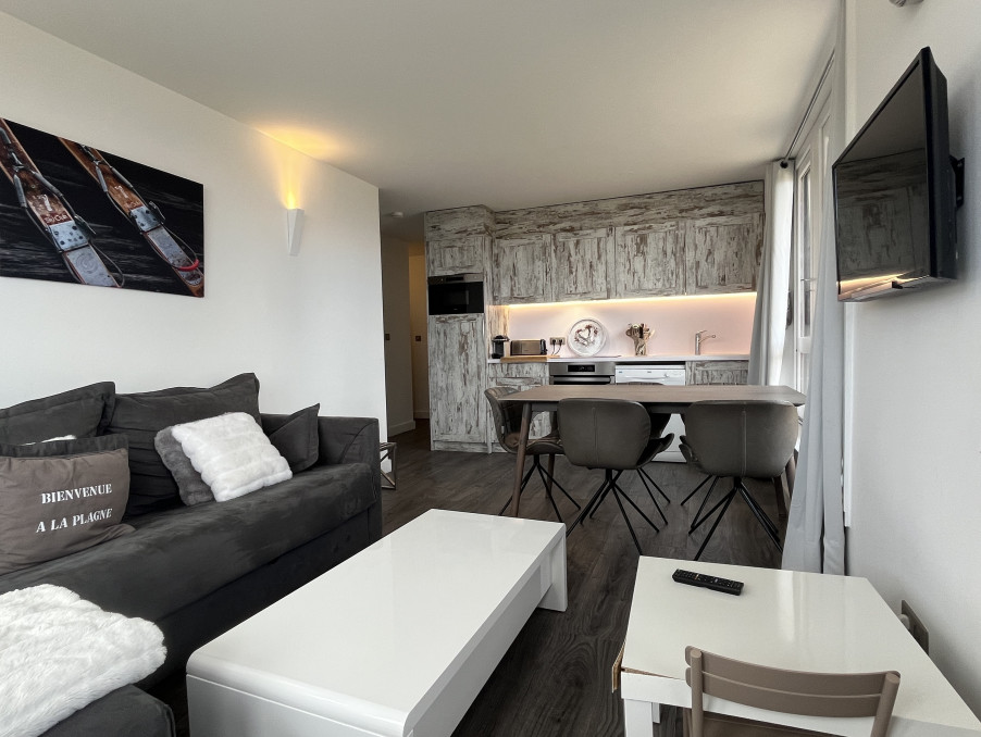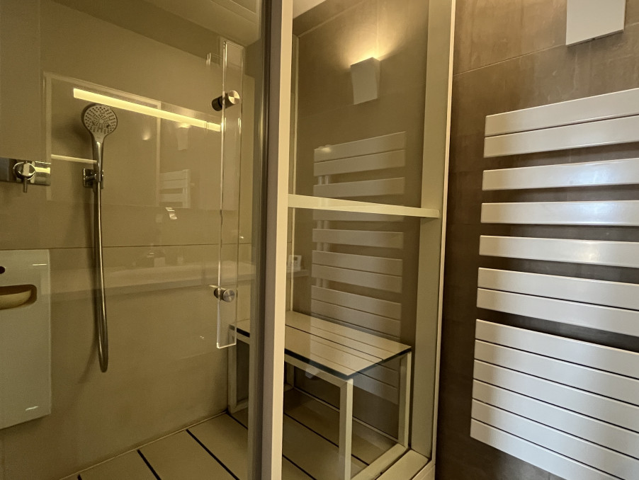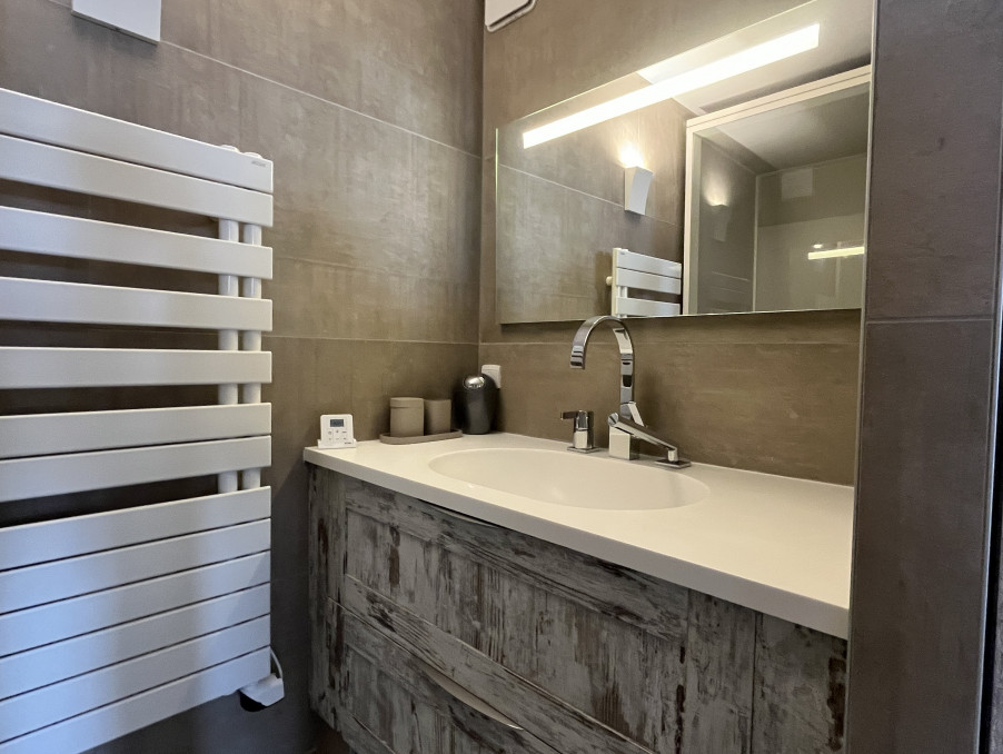 Très bel appartement 3 pièces avec grande terrasse, magnifique vue Mont-Blanc. Bénéficiant de 2 grandes chambres doubles, une salle de bains avec douche et HAMMAM, de nombreux placards, une très belle cuisine ouverte sur le séjour.