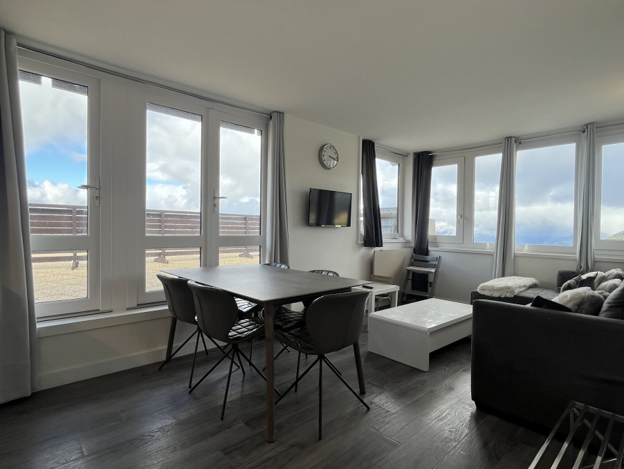 Immeuble situé au pied des pistes avec un départ direct vers 4 directions et stations différentes qui bénéficie d'une Galerie Commerciale intérieure avec tous ses commerces, loisirs et services à bord et qui est également reliée à la station de Plagne Centre par le Télémétro (6mns).