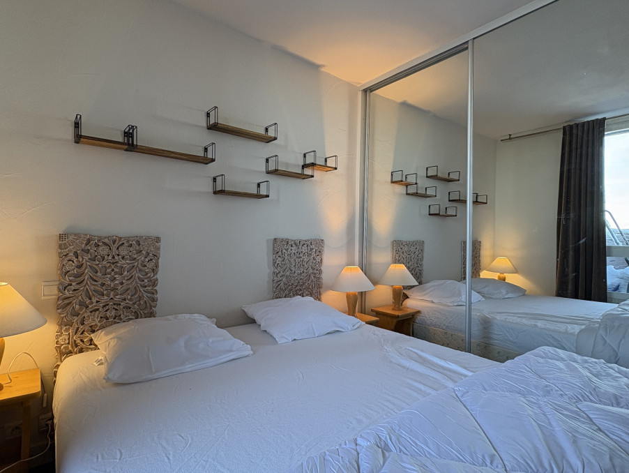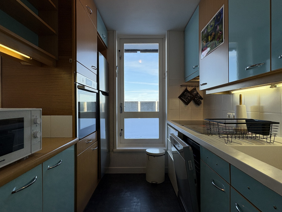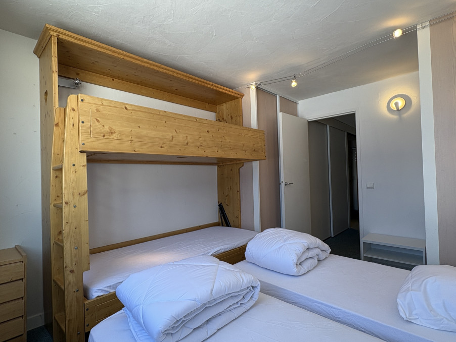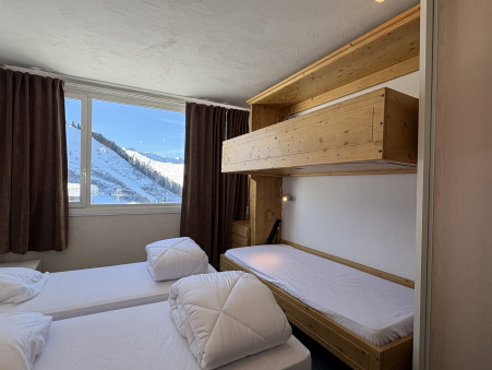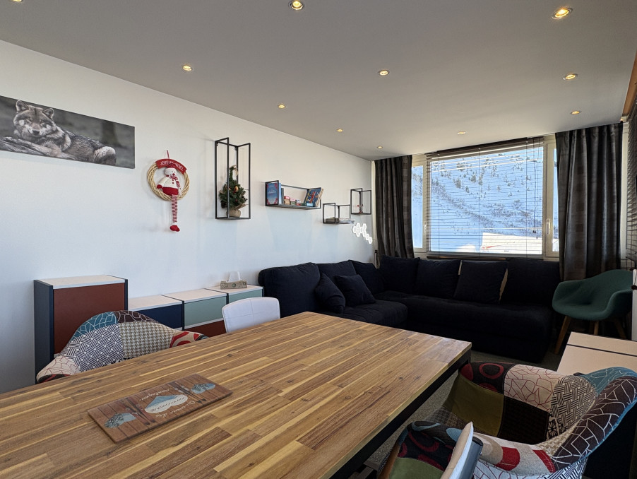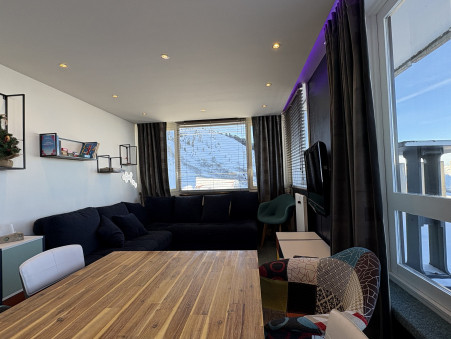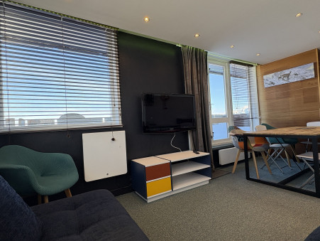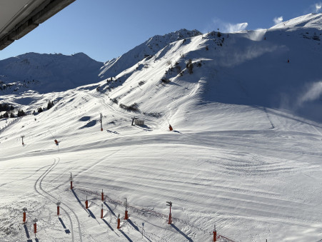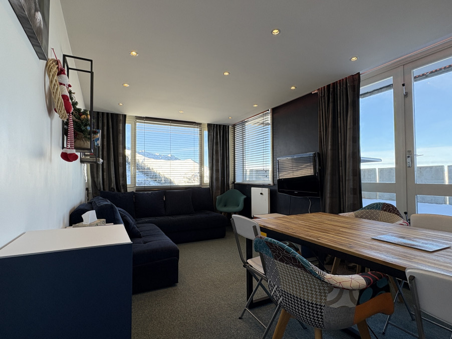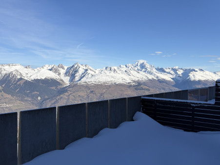 Appartement 3 pièces d'environ 52M² bénéficiant d'une grande terrasse double exposition Sud/Ouest/Ouest, étage élevé, vue pistes et Mont-Blanc.