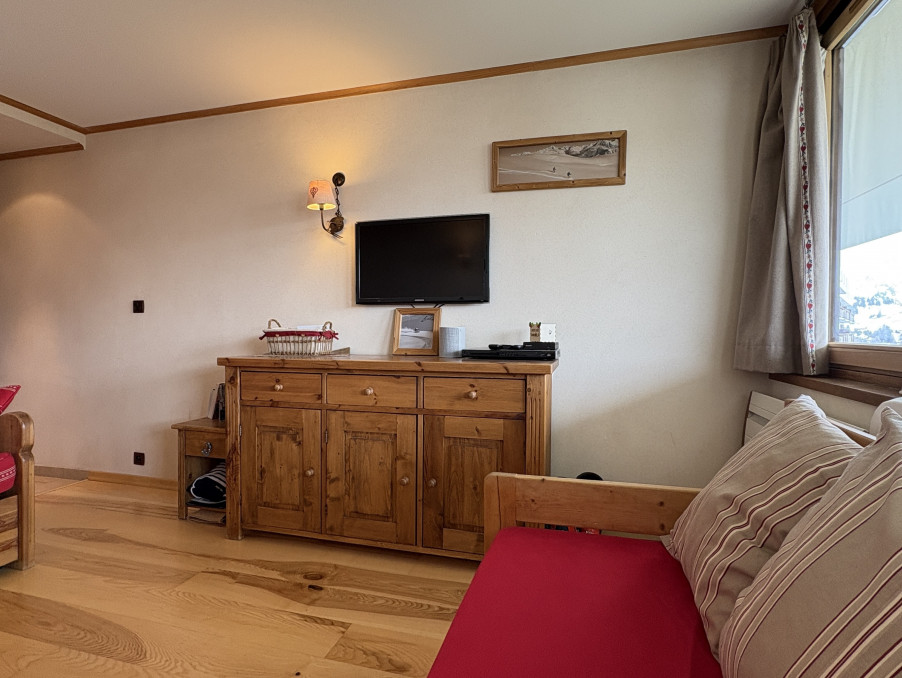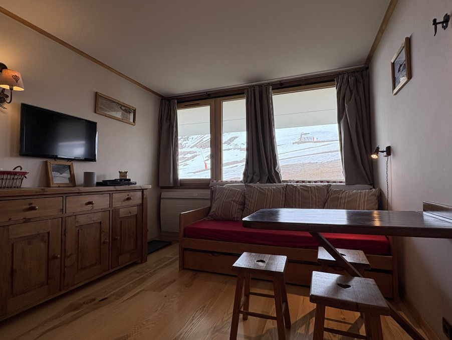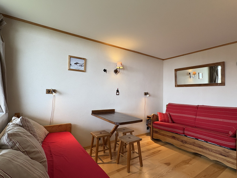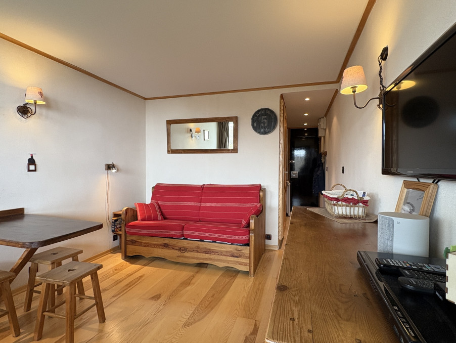 Ce très beau studio d'environ 20m² équipé pour 2 personnes est situé dans la Résidence AIME 2000- CHAMOIS. Résidence au pied des pistes bénéficiant d'une galerie commerciale centrale avec tous les commerces à bord.