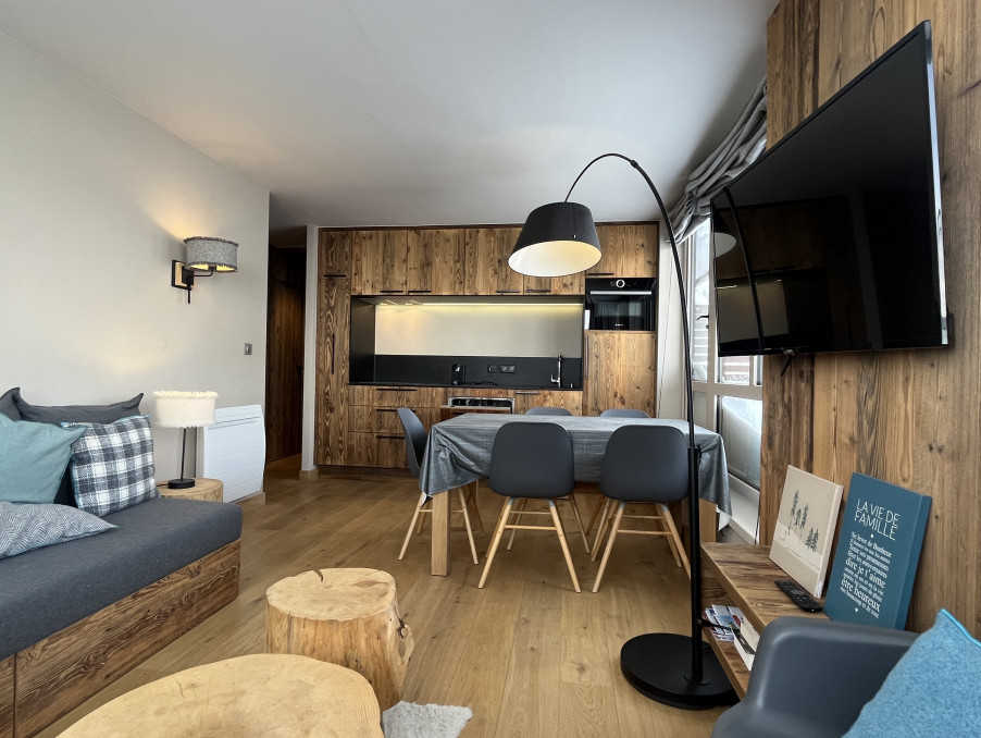 Très bel appartement 3 pièces entièrement rénové avec de tres belles prestations. Une très grande terrasse avec vue sur le Mont-Blanc et les pistes