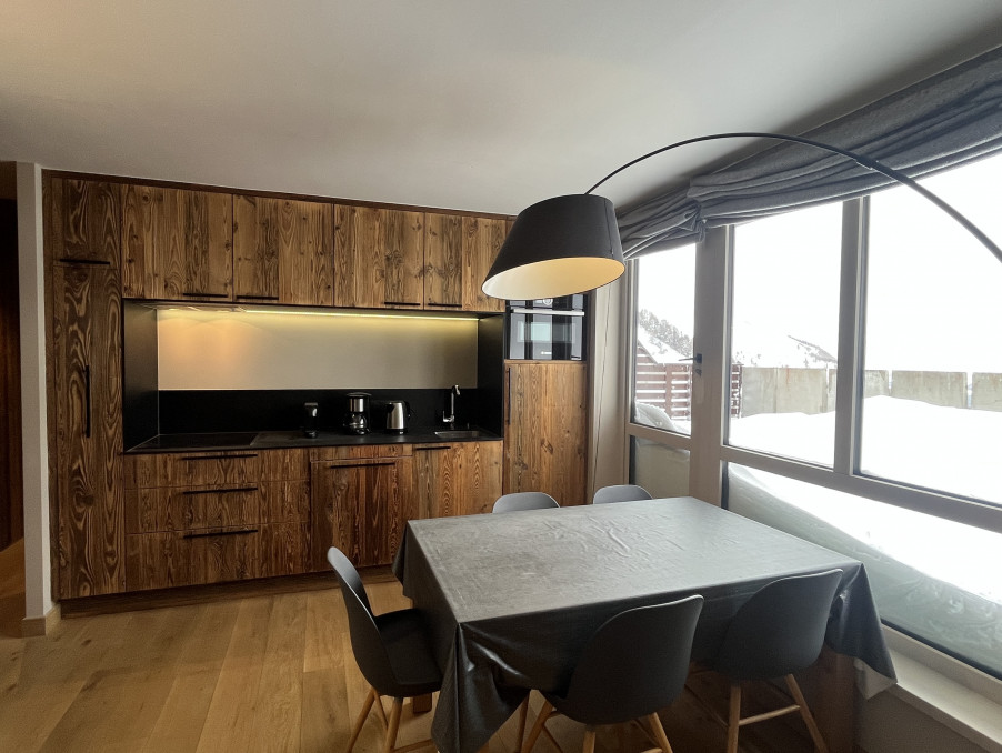 Immeuble situé au pied des pistes avec un départ direct vers 4 directions et stations différentes qui bénéficie d'une Galerie Commerciale intérieure avec tous ses commerces, loisirs et services à bord et qui est également reliée à la station de Plagne Centre par le Télémétro (6mns).
