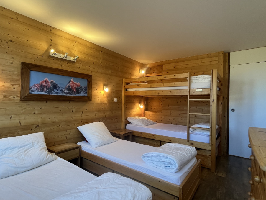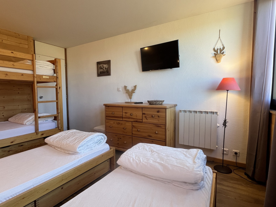 Chambre 2 : 2 Lits superposés et 2 lits simples + TV (couettes)