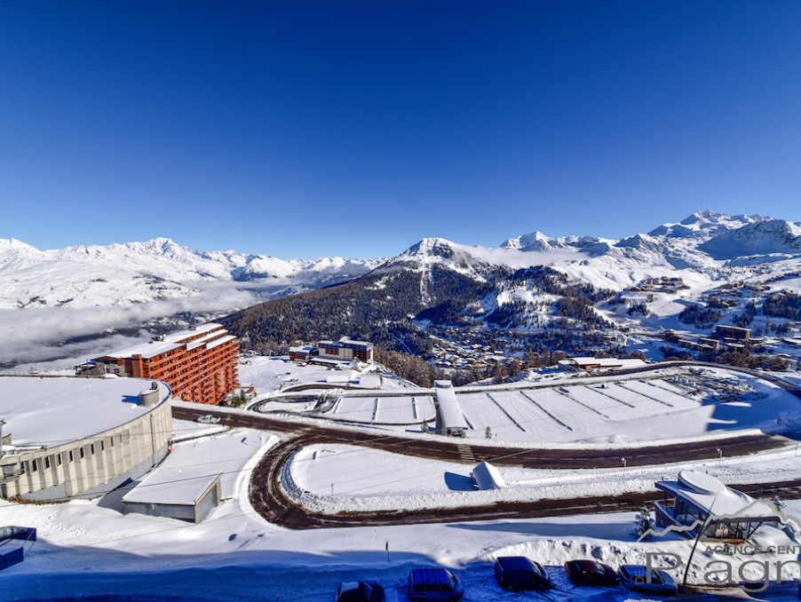 Immeuble situé au pied des pistes avec un départ direct vers 4 directions et stations différentes qui bénéficie d'une Galerie Commerciale intérieure avec tous ses commerces, loisirs et services à bord et qui est également reliée à la station de Plagne Centre par le Télémétro (6mns).