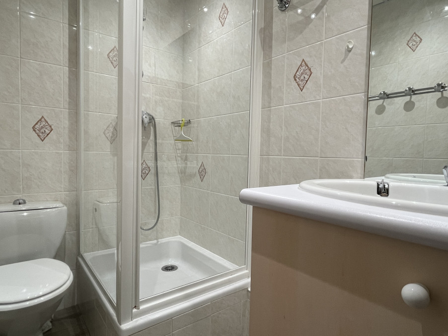 Un séjour, un coin nuit, une kitchenette équipée, une salle de bains avec WC