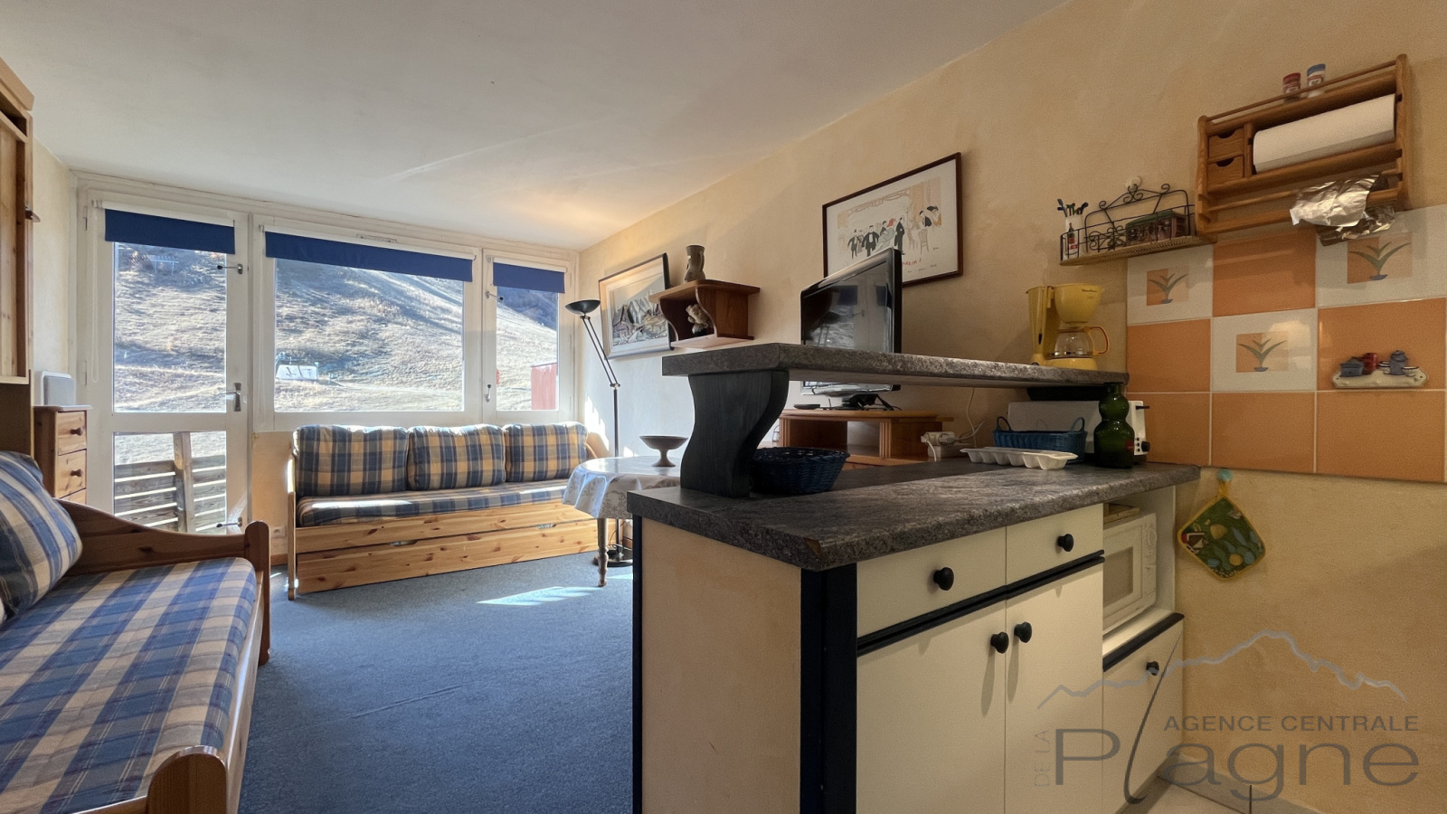 Ce studio d'environ 26 m² rénové bénéficie d'un balcon exposé Sud/Ouest avec vue sur les pistes.