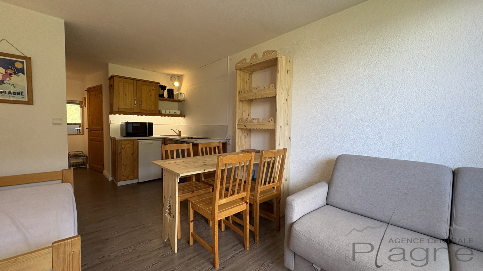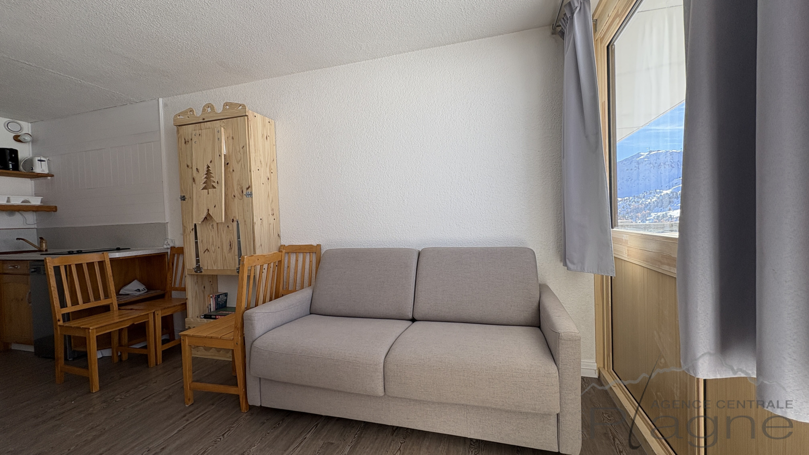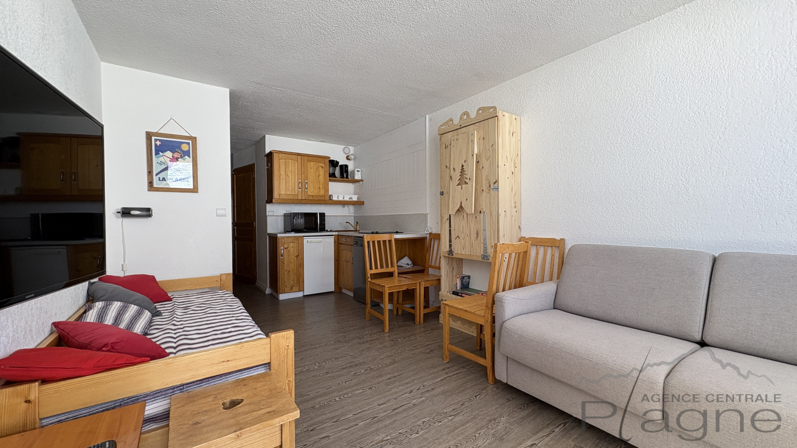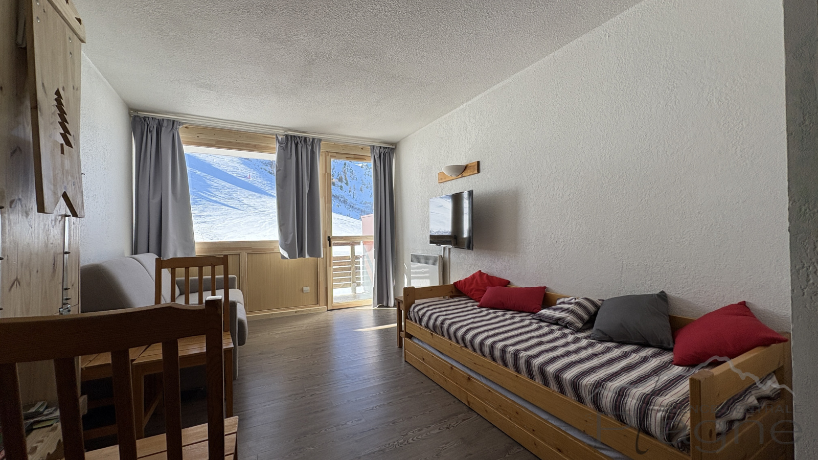 Il est situé dans la station d'AIME 2000 , la plus haute (2100 m) et peut-être la plus originale de La Plagne avec sa Résidence du même nom. Immeuble situé au pied des pistes avec un départ direct vers 4 directions et stations différentes qui bénéficie d'une Galerie Commerciale intérieure avec tous ses commerces, loisirs et services à bord et qui est également reliée à la station de Plagne Centre par le Télémétro (6mns).