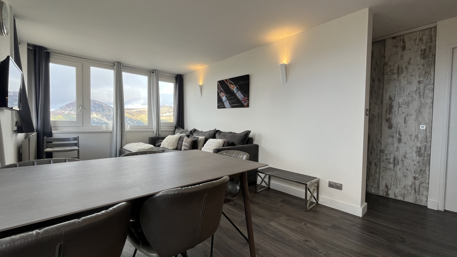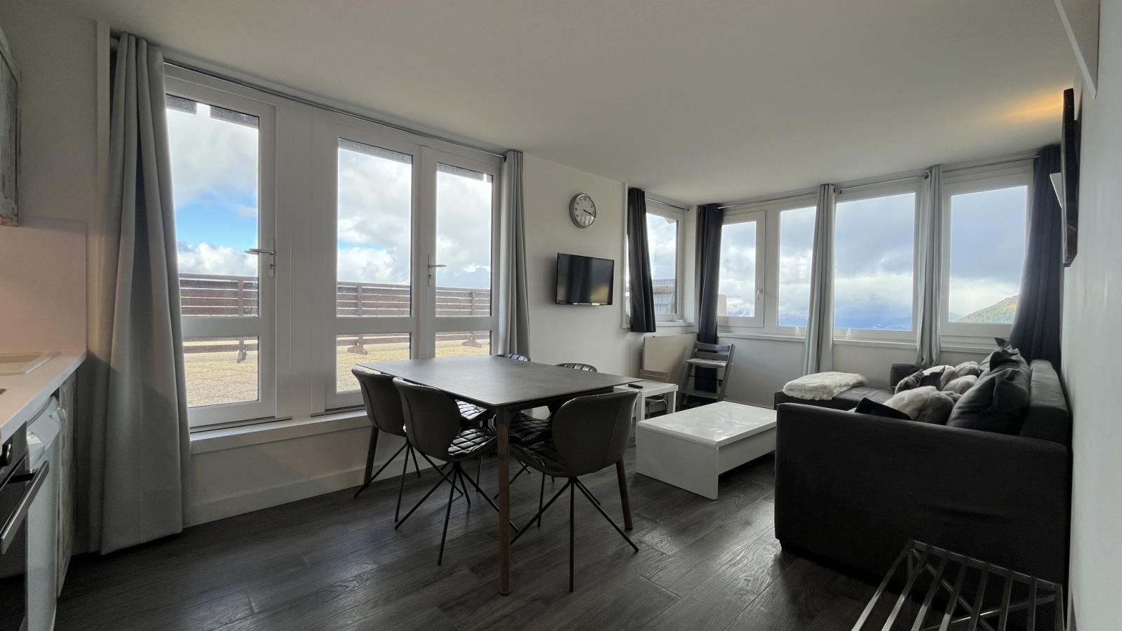 Il est situé dans la station d'AIME 2000 - FLECHE , la plus haute (2100 m) et peut-être la plus originale de La Plagne avec sa Résidence du même nom. Immeuble situé au pied des pistes avec un départ direct vers 4 directions et stations différentes qui bénéficie d'une Galerie Commerciale intérieure avec tous ses commerces, loisirs et services à bord et qui est également reliée à la station de Plagne Centre par le Télémétro (6mns).