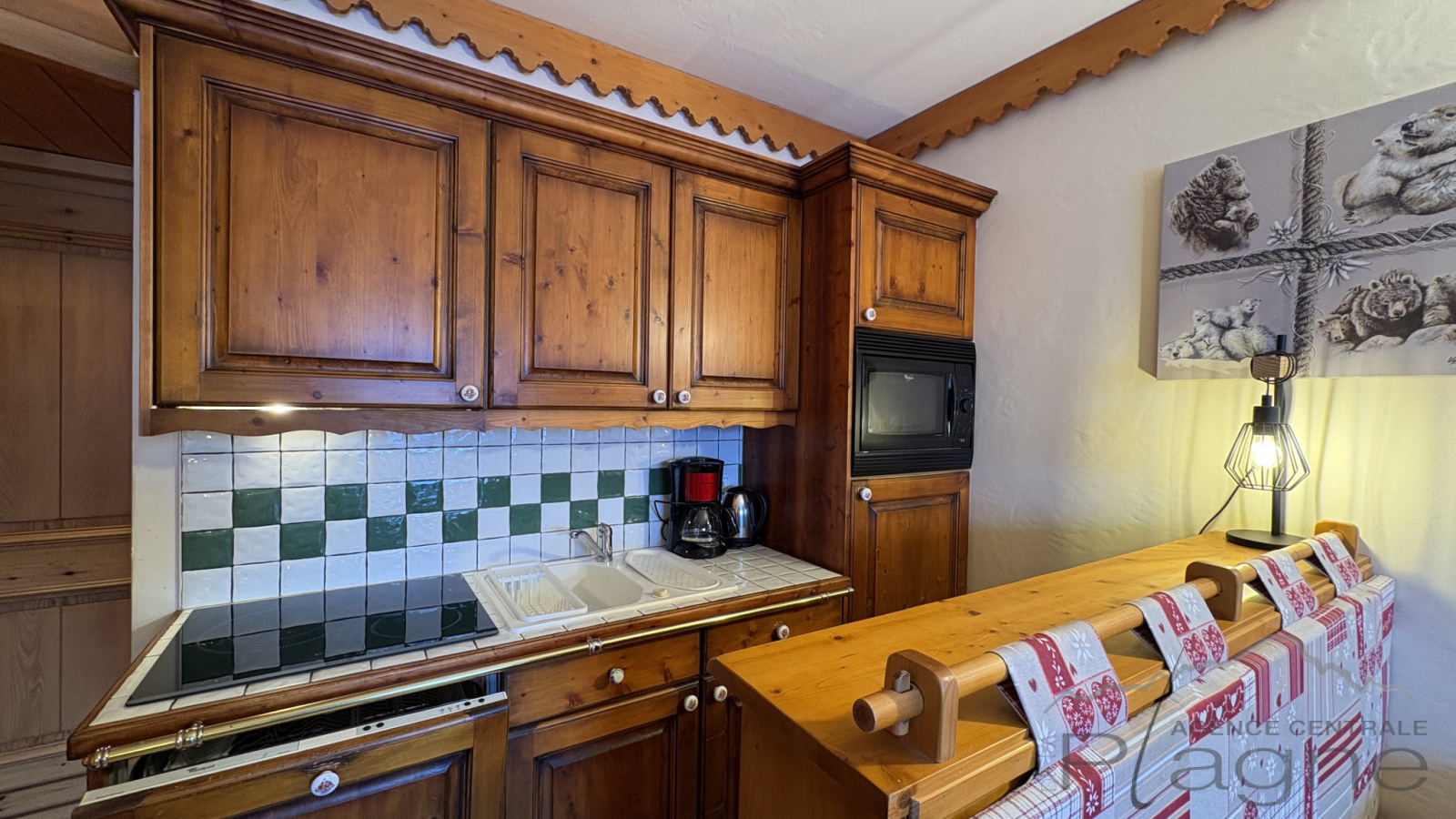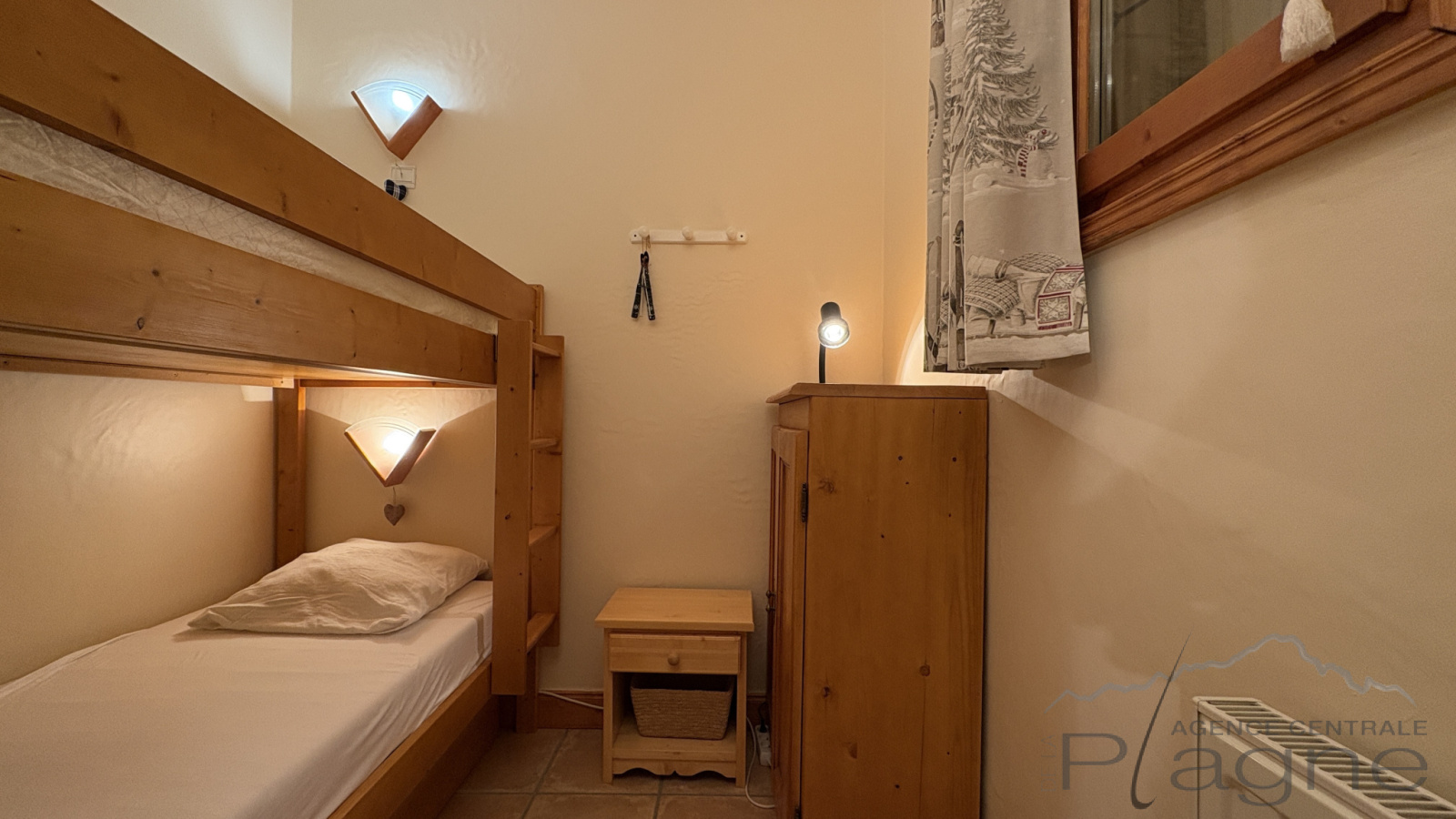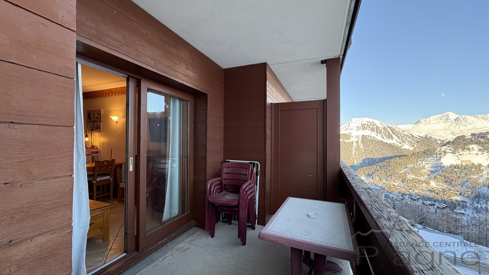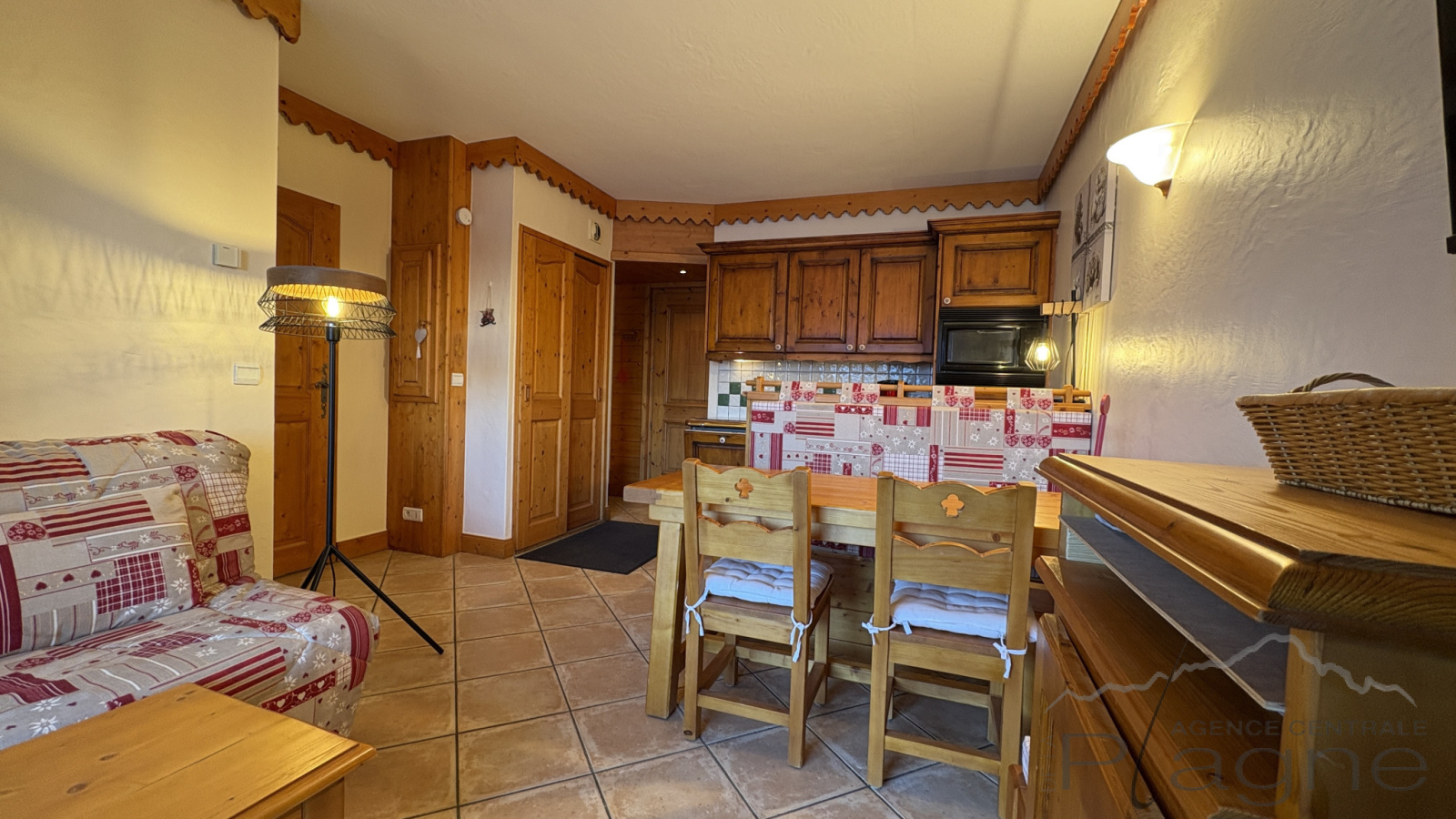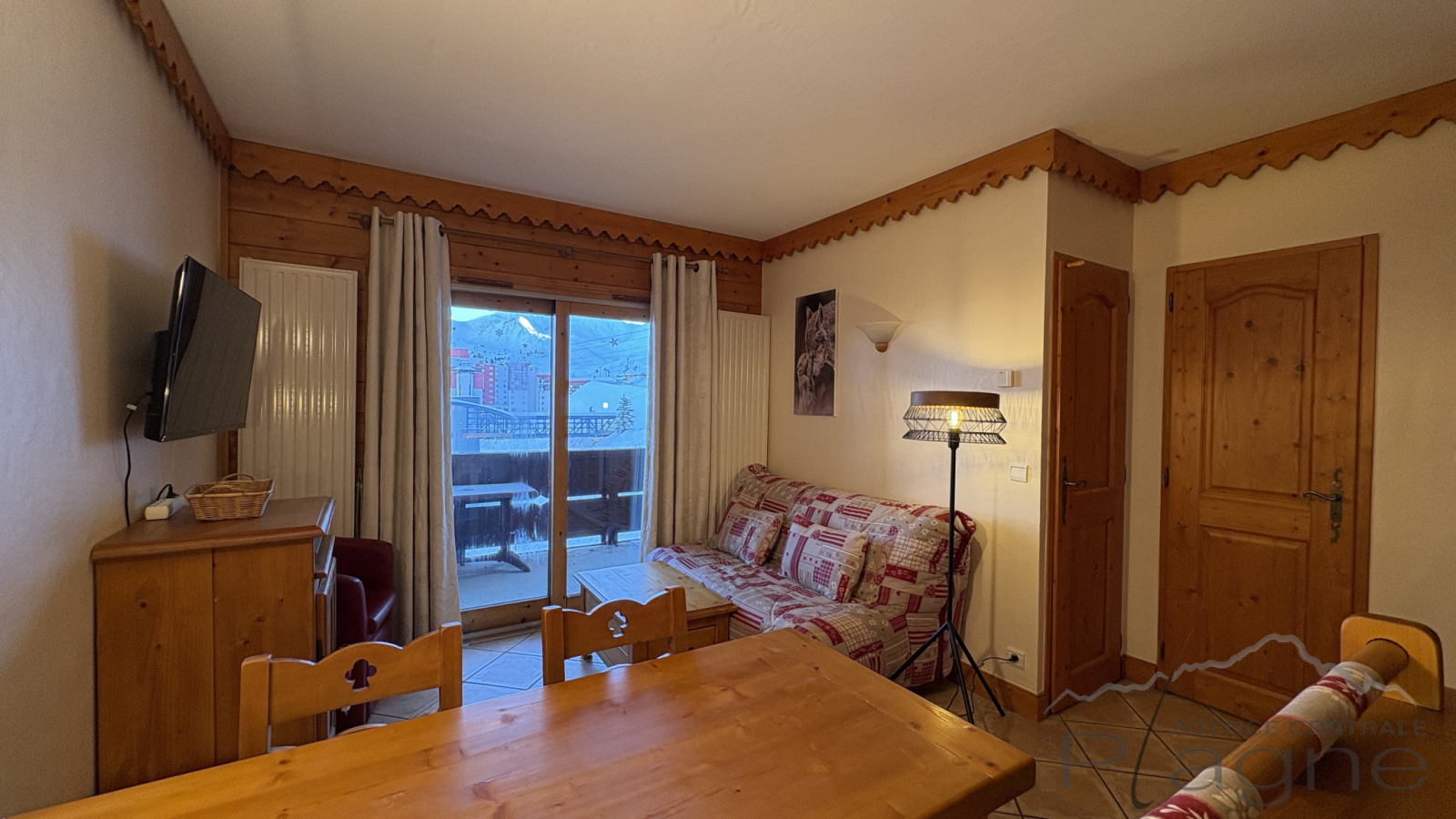 Appartement 2 pièces cabine 6 personnes dans Résidence de prestige avec accès Piscine et SPA. Il dispose d'une terrasse vue sur les pistes et le Mont-Blanc. Vous bénéficiez également d'une place de parking couvert