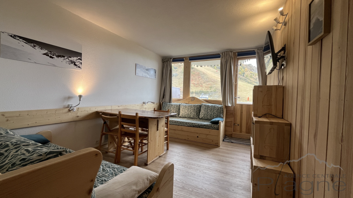 Joli studio d'environ 26 m² qui bénéficie d'un coin nuit et d'un balcon exposé Sud/Ouest avec vue sur les pistes et est disposé ainsi