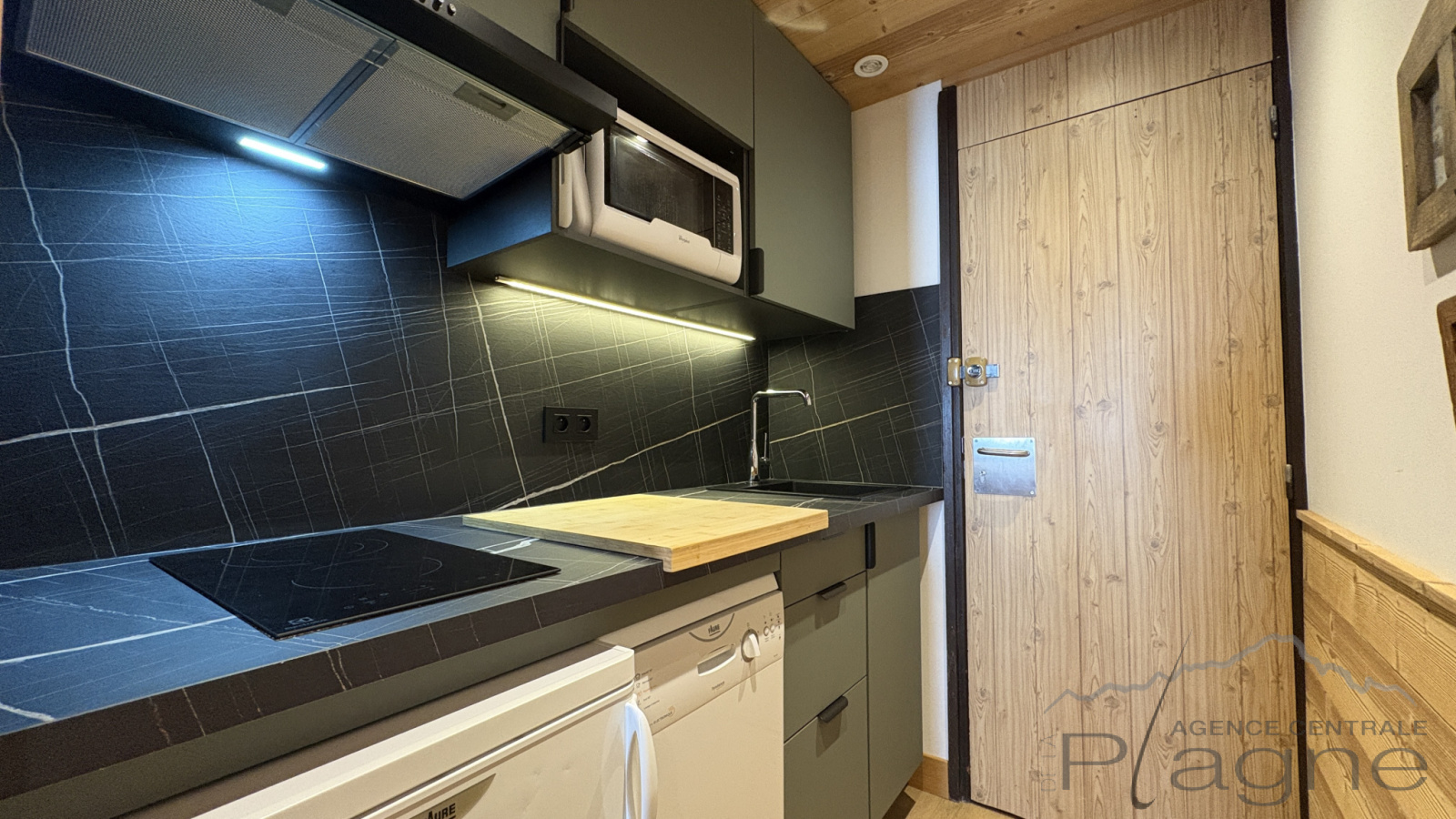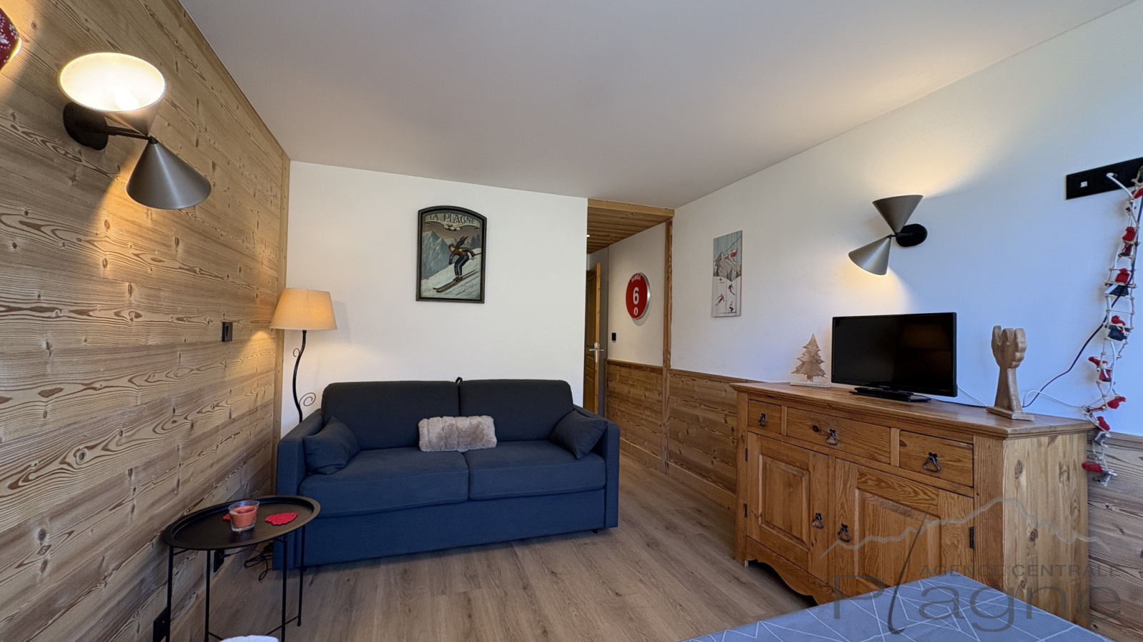 Ce très joli studio entièrement rénové bénéficie d'une petite chambre fermée et d'un balcon exposé Sud/Ouest avec vue sur les pistes.