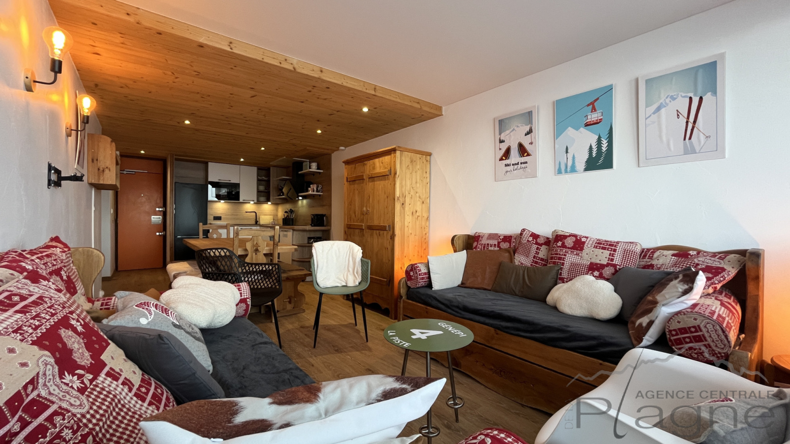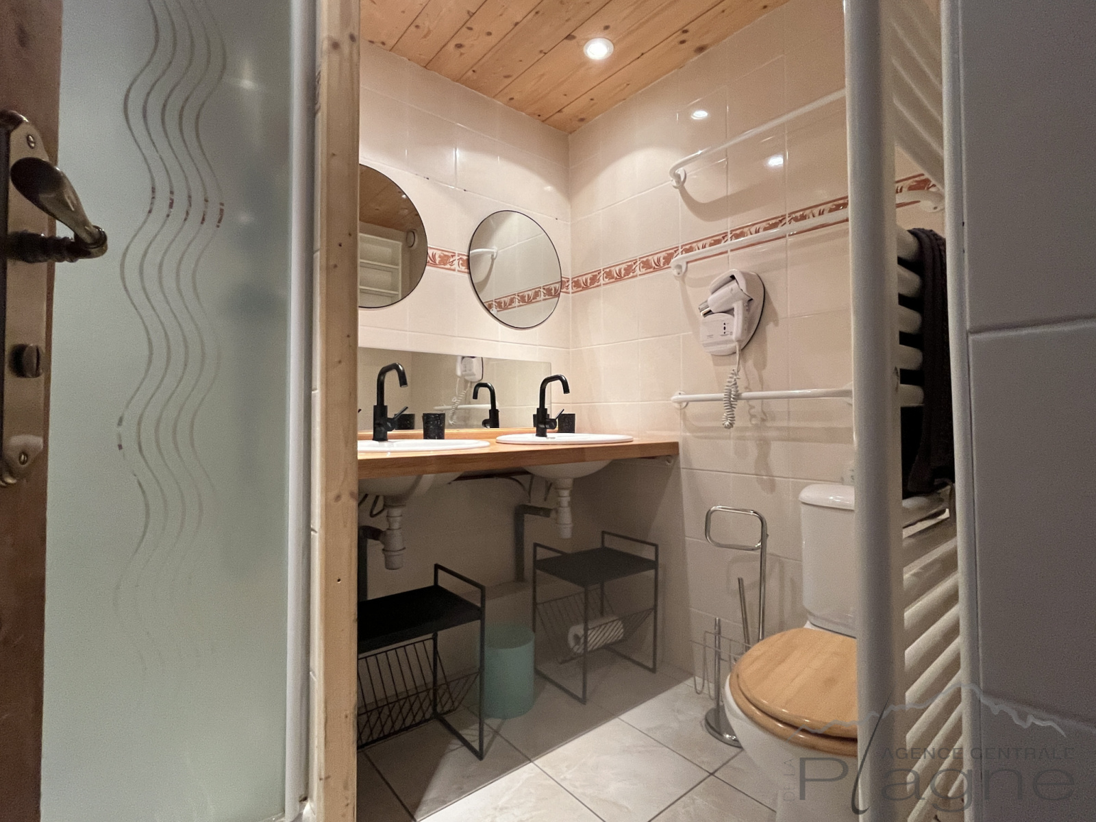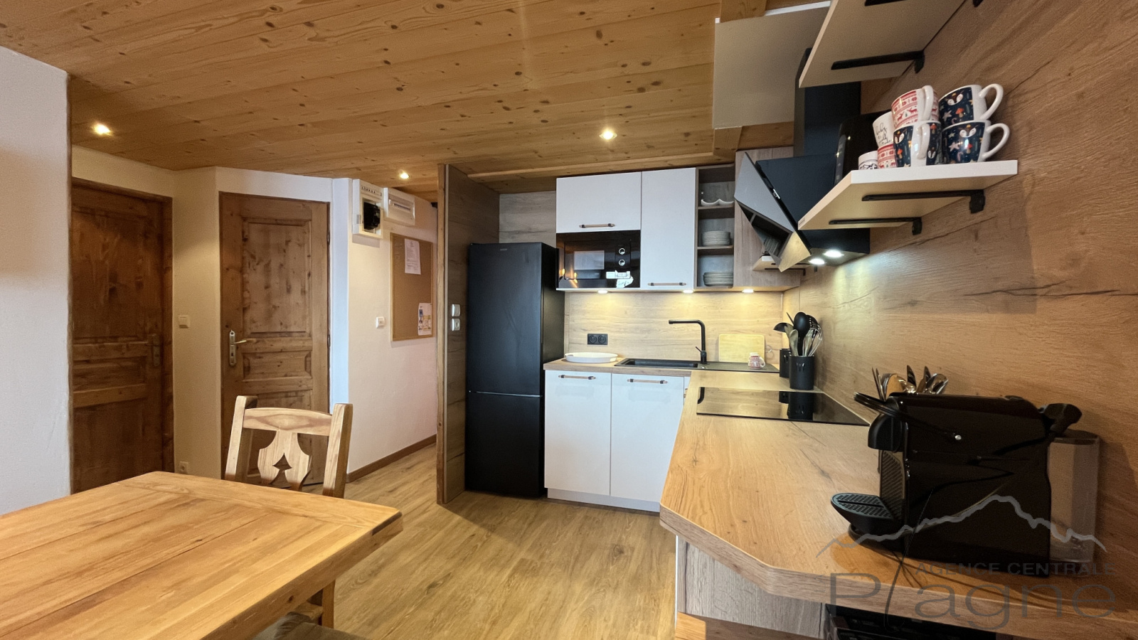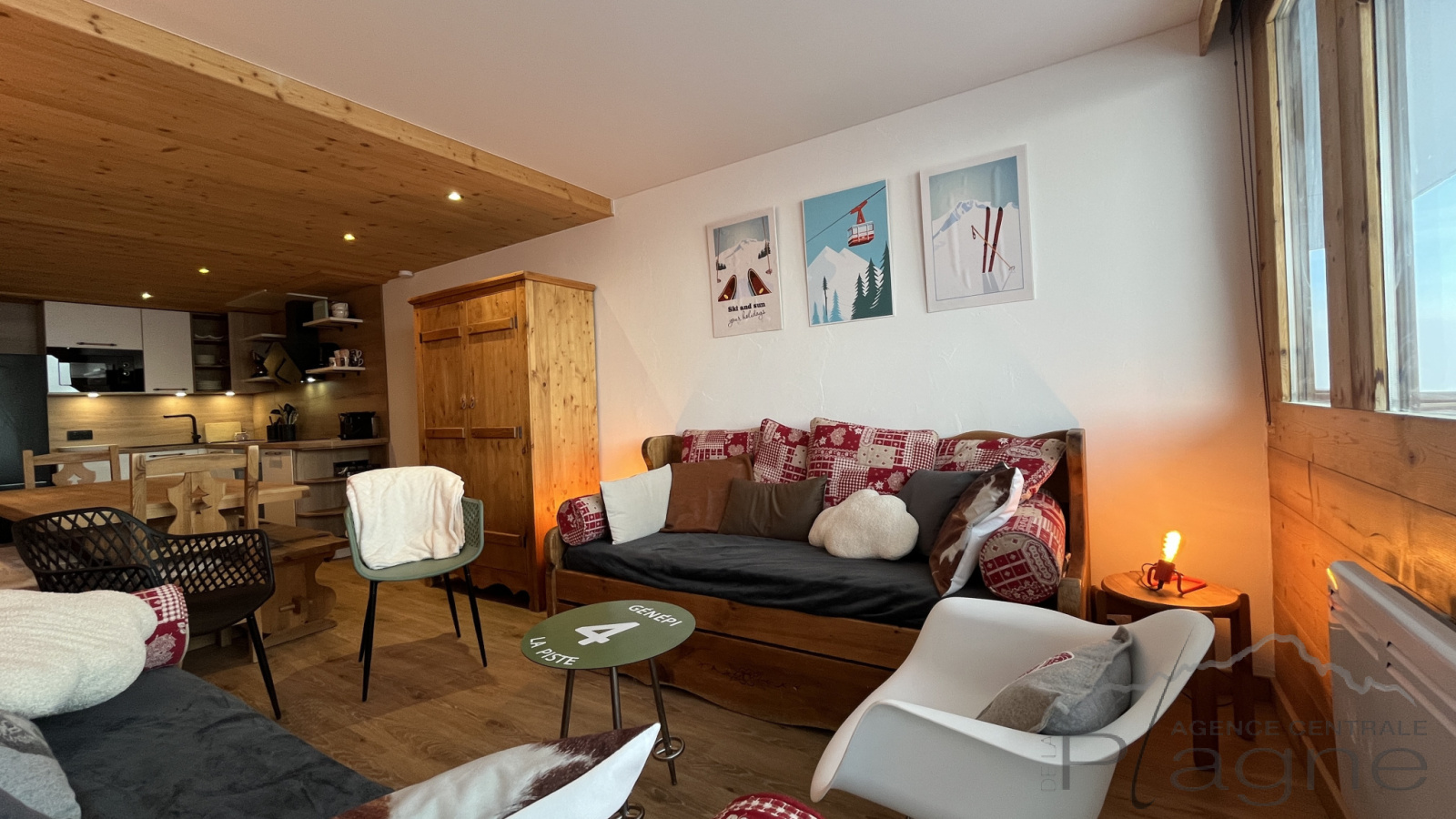 Bel appartement 3 Pièces pour 8 personnes bénéficiant d'une chambre double, une chambre cabine avec 2 lits superposés , une cuisine équipée ouverte sur séjour, une salle de bains, WC séparés . Un grand balcon avec vue sur le Mont-Blanc, exposition Nord/Est