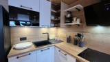 * Une cuisine équipée: 4 plaques vitro, un LV, 1 MO, 1 four. 1 frigo + congélateur, un grille pain, une bouilloire, une cafetière électrique, une NESPRESSO