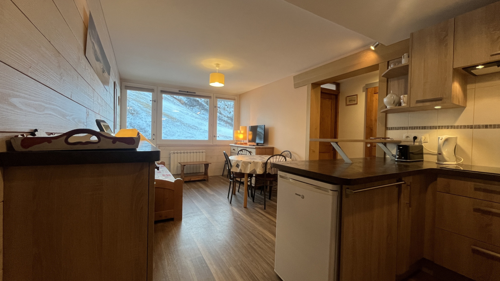 Très beau 3 pièces d'environ 52 m² disposant de 1 chambre et 1 coin nuit , 2 salles de bain, un grand séjour bénéficiant d'un grand balcon exposé Sud/ouest avec vue sur les pistes. Internet fourni gratuitement par les propriétaires