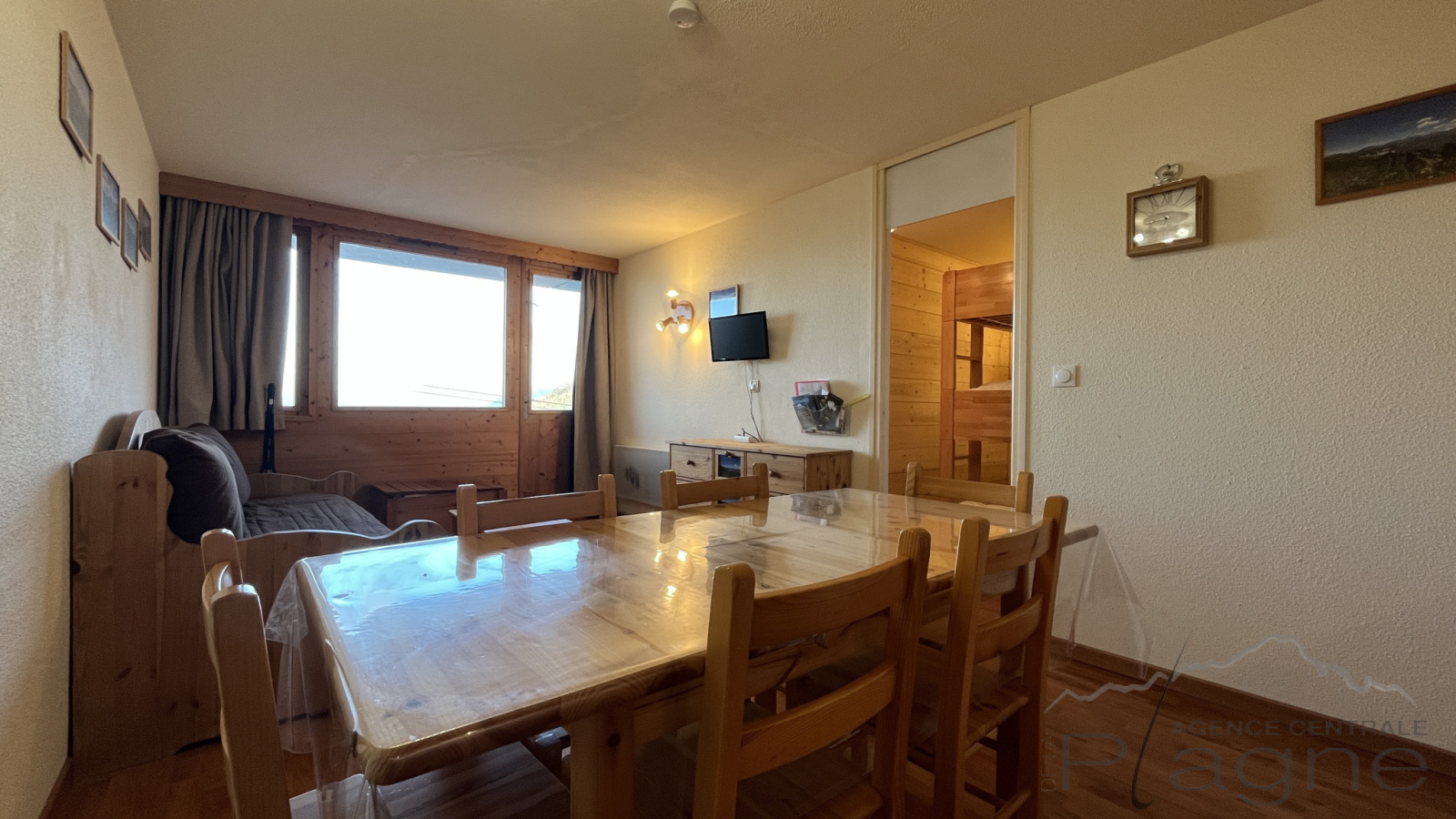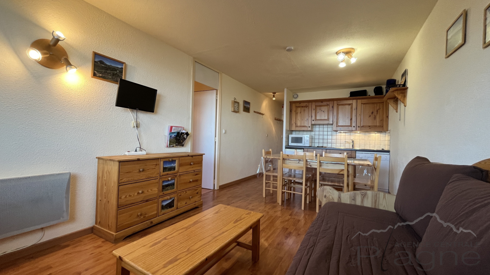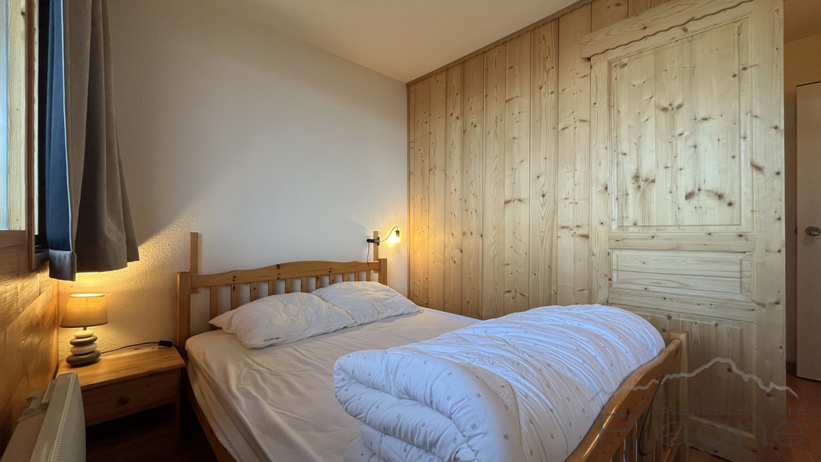 2 Pièces d'environ 36m² avec cuisine américaine et chambre 4 couchages. Un balcon exposé Nord/Est avec une très belle vue sur le Mont-Blanc et la Vallée.
