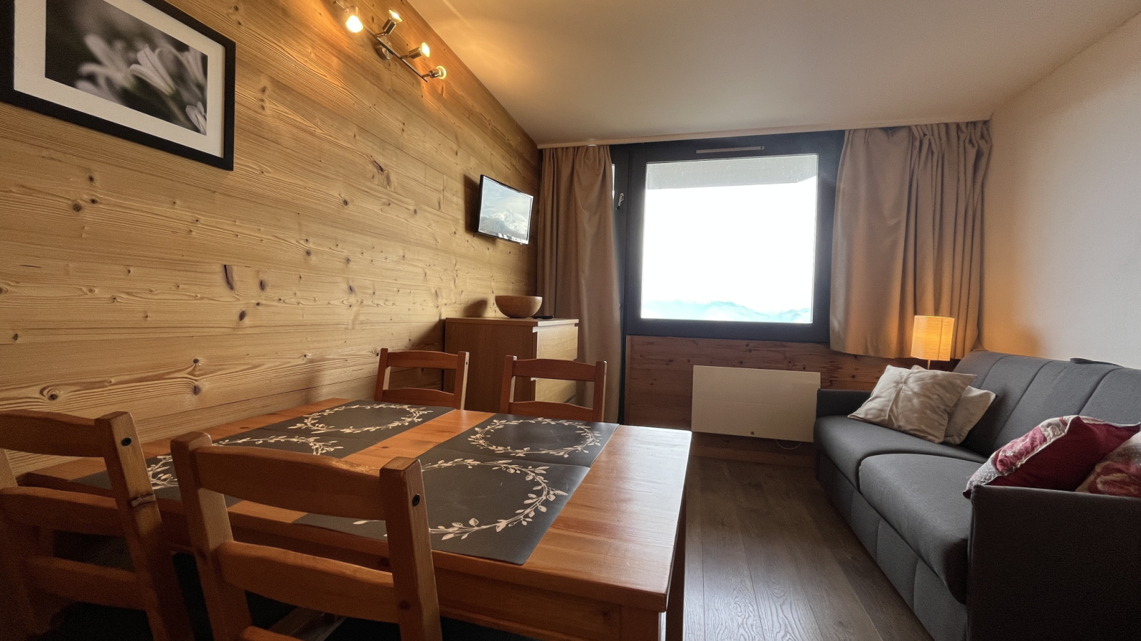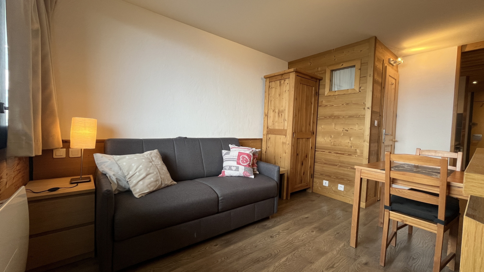 Ce très beau studio d'environ 26 m² entièrement rénové bénéficie d'une petite chambre fermée et d'un balcon exposé Nord/Est avec très belle vue sur le Mont Blanc.