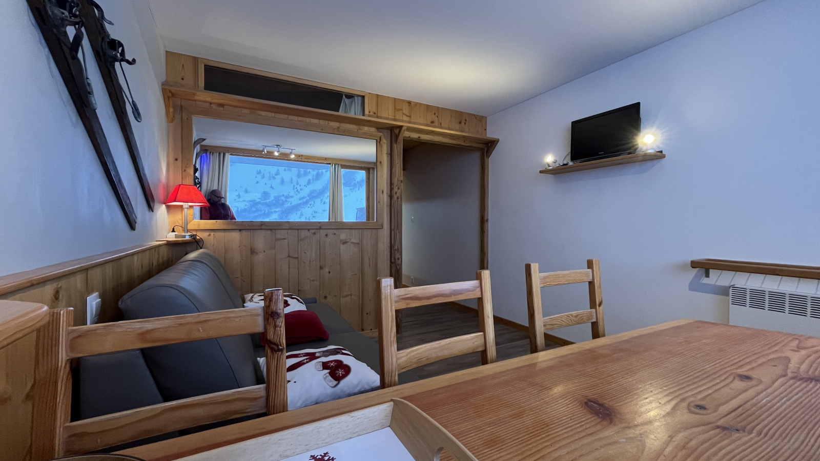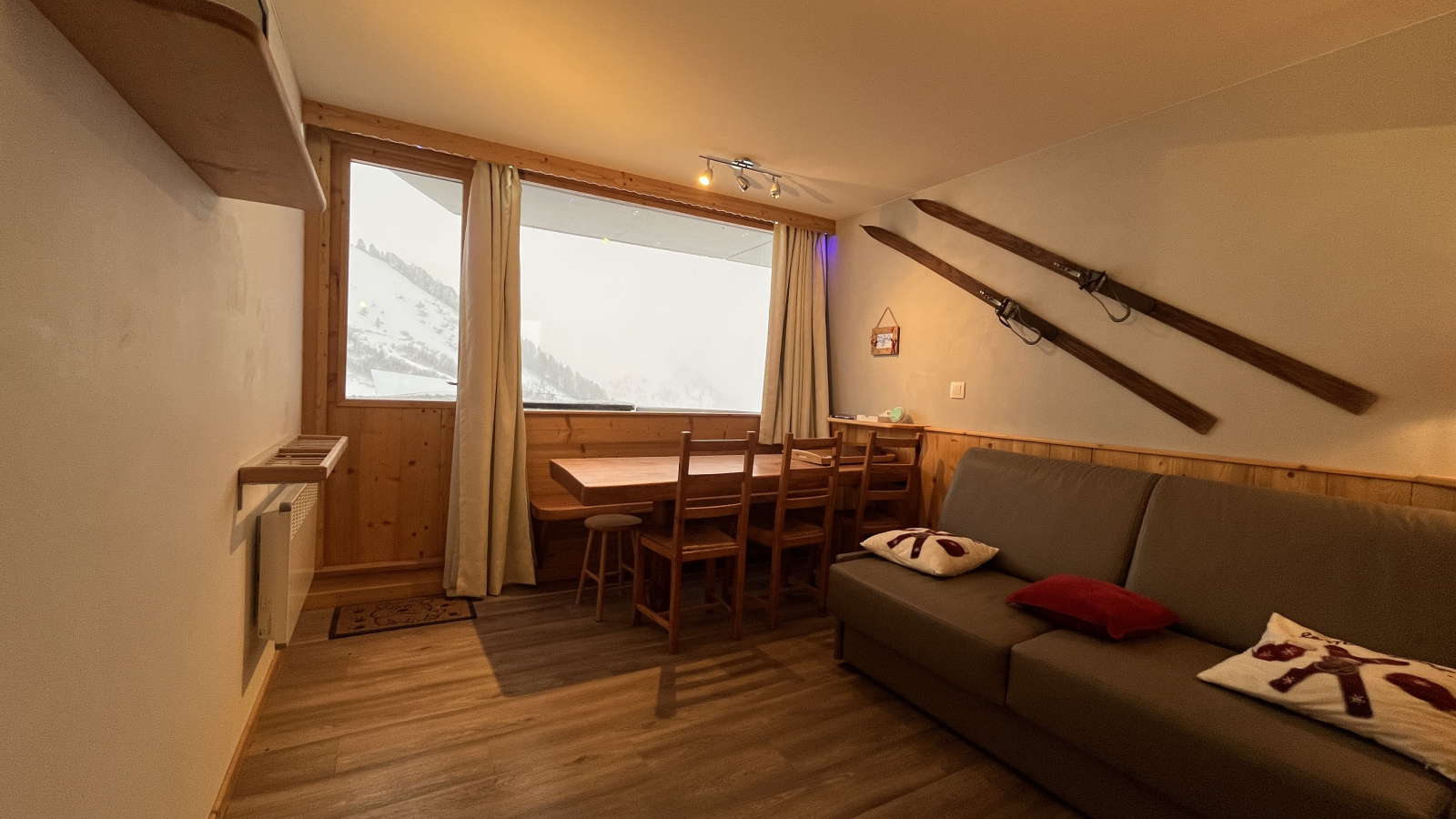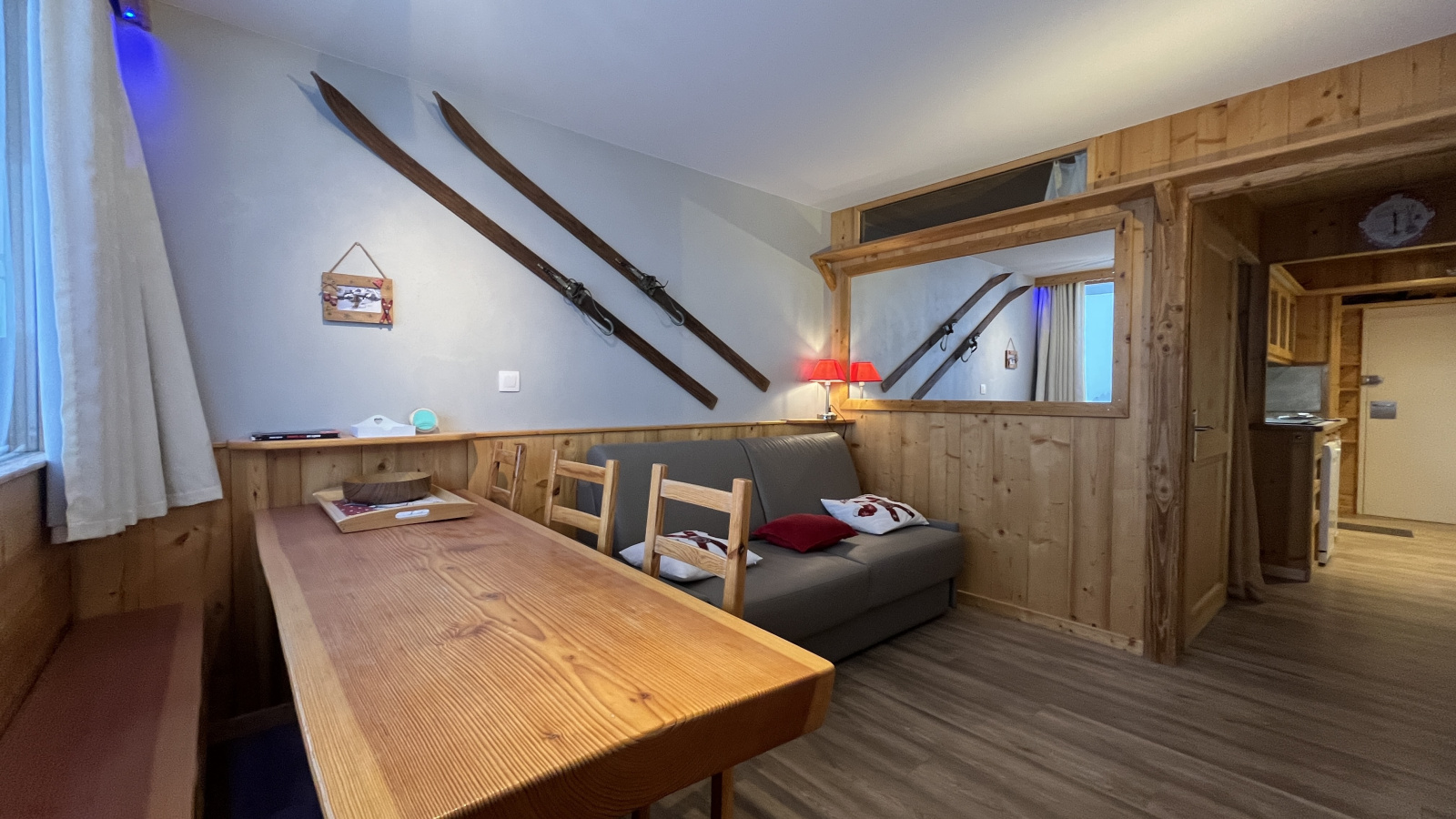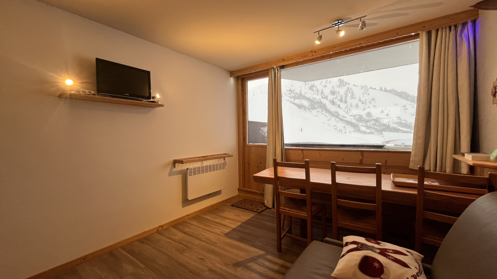 Ce très beau studio d'environ 26 m² entièrement rénové bénéficie d'une cabine fermée et d'un balcon exposé Sud/Ouest avec vue sur les pistes.