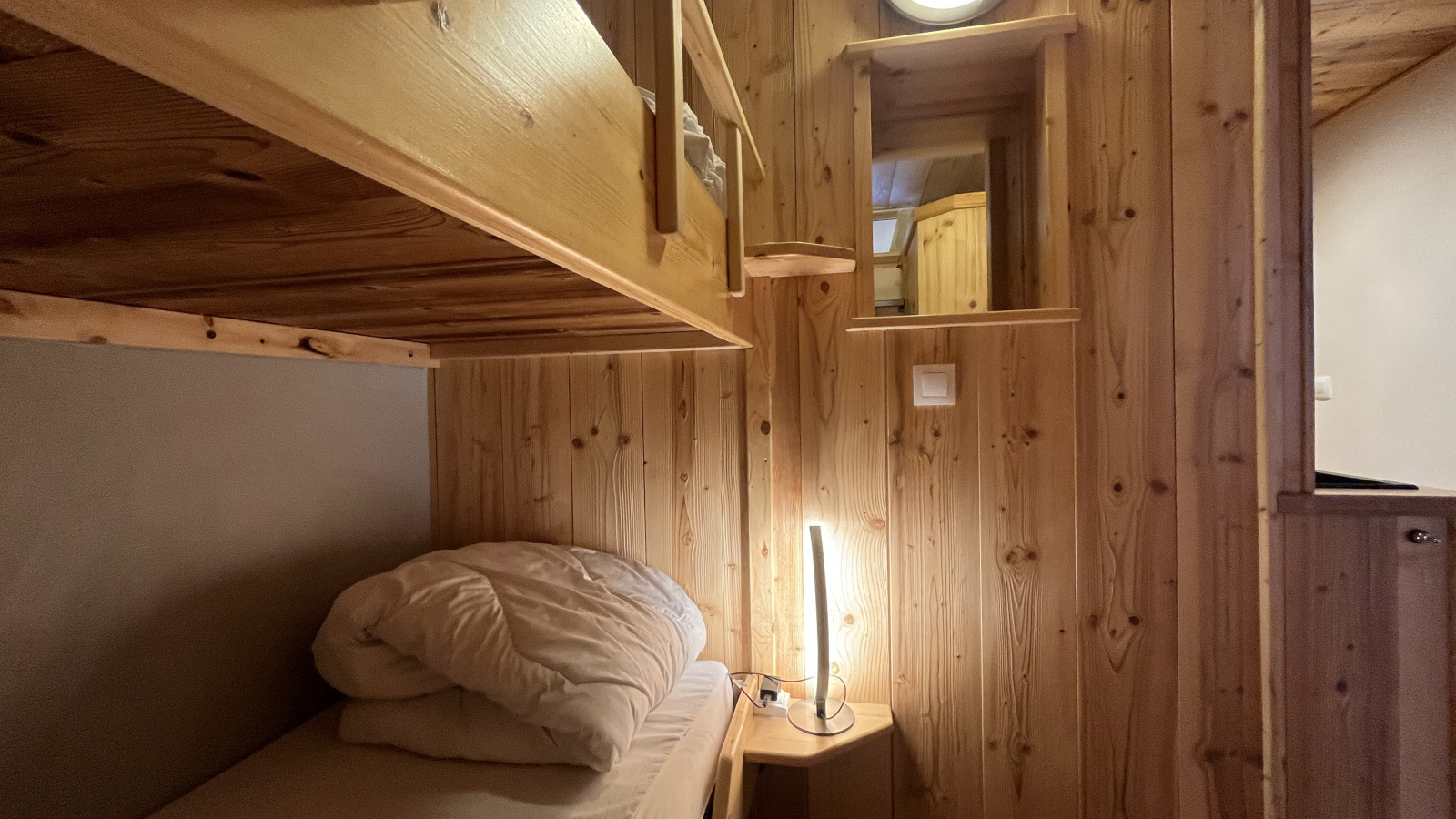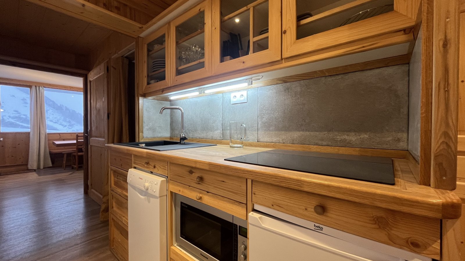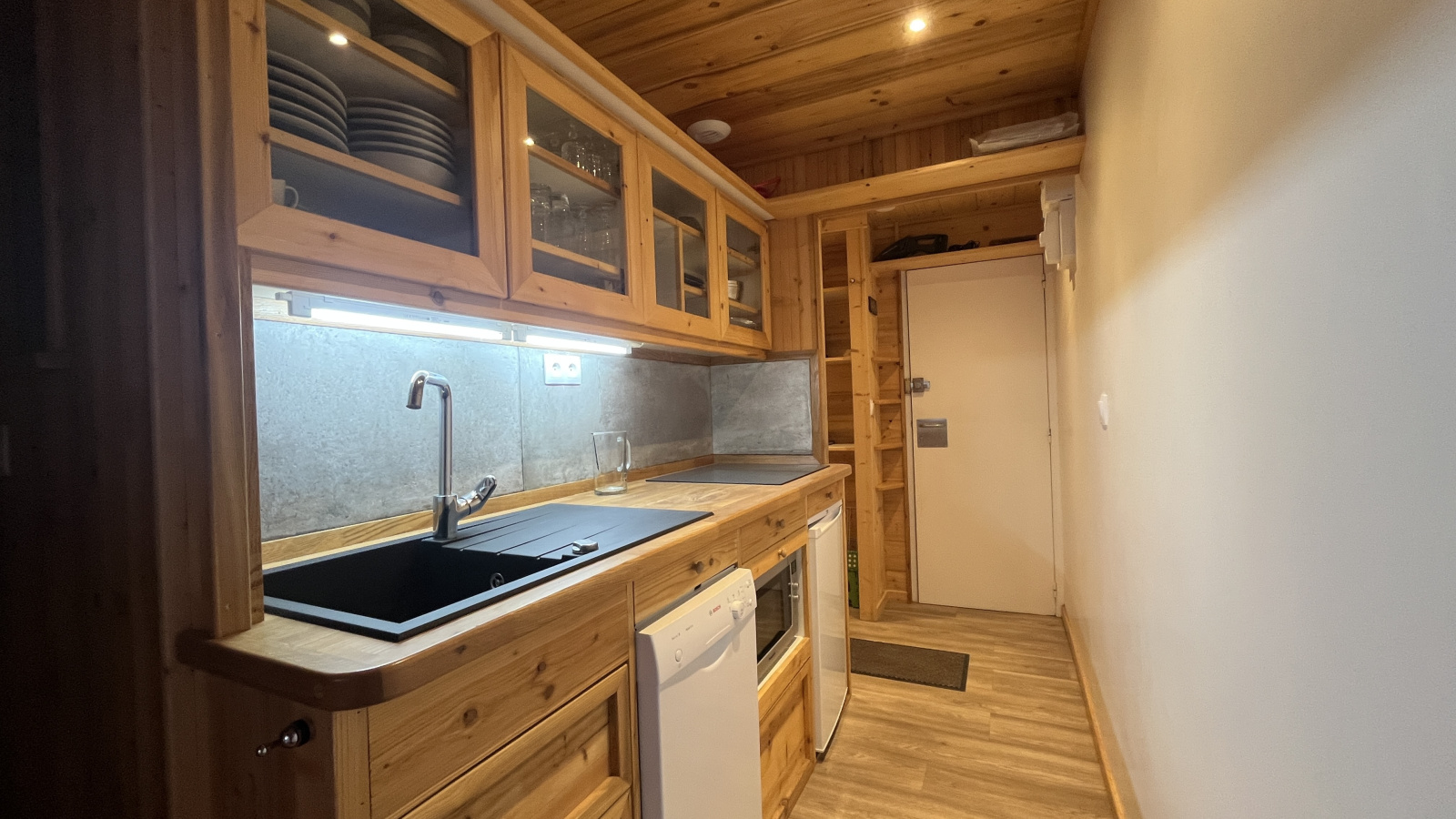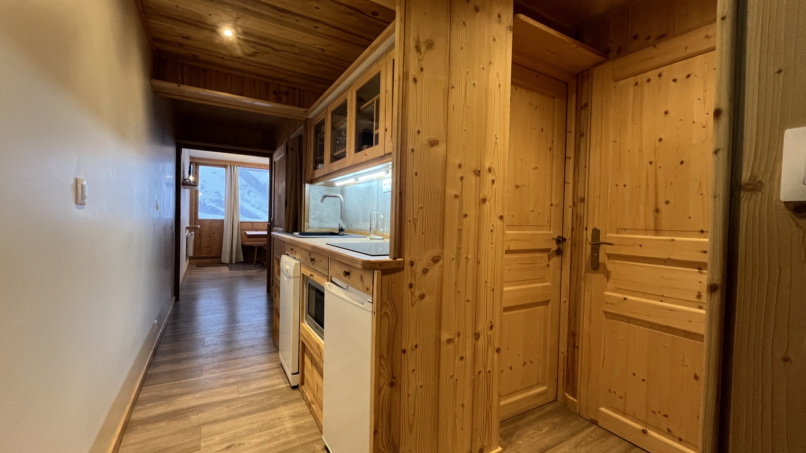 Ce très beau studio d'environ 26 m² entièrement rénové bénéficie d'une cabine fermée et d'un balcon exposé Sud/Ouest avec vue sur les pistes.