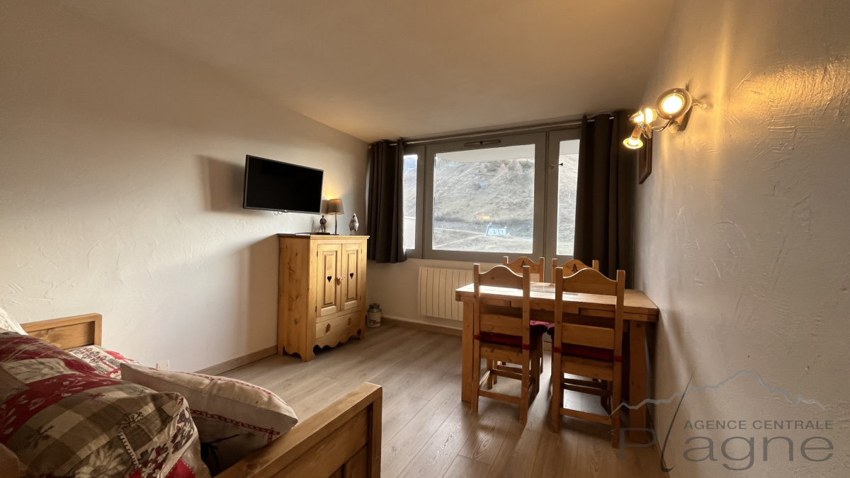 Ce très joli studio d'environ 26 m² entièrement rénové bénéficie d'un coin nuit fermé et un balcon exposé Sud/Ouest avec vue sur les pistes.