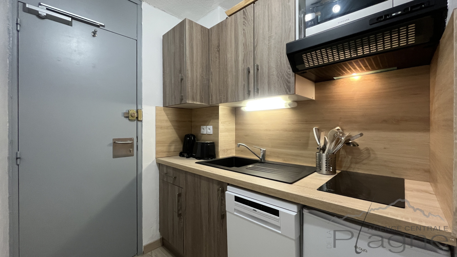 Cuisine : 2 plaques vitro, 1 micro ondes, 1 LV, cafetière électrique