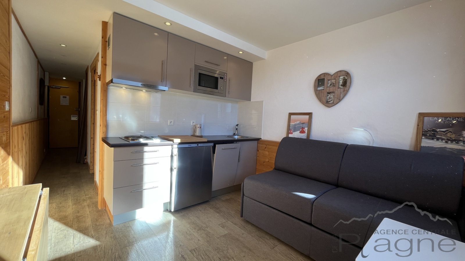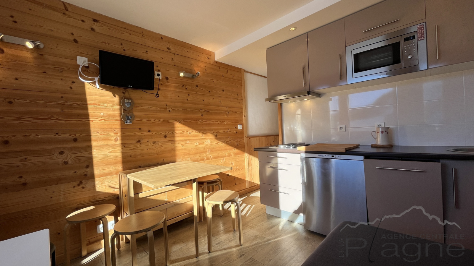 Ce très joli studio d'environ 26 m² entièrement rénové bénéficie d'une petite chambre fermée, d'un WC séparé, d'un balcon exposé Sud/Ouest avec vue sur les pistes.
