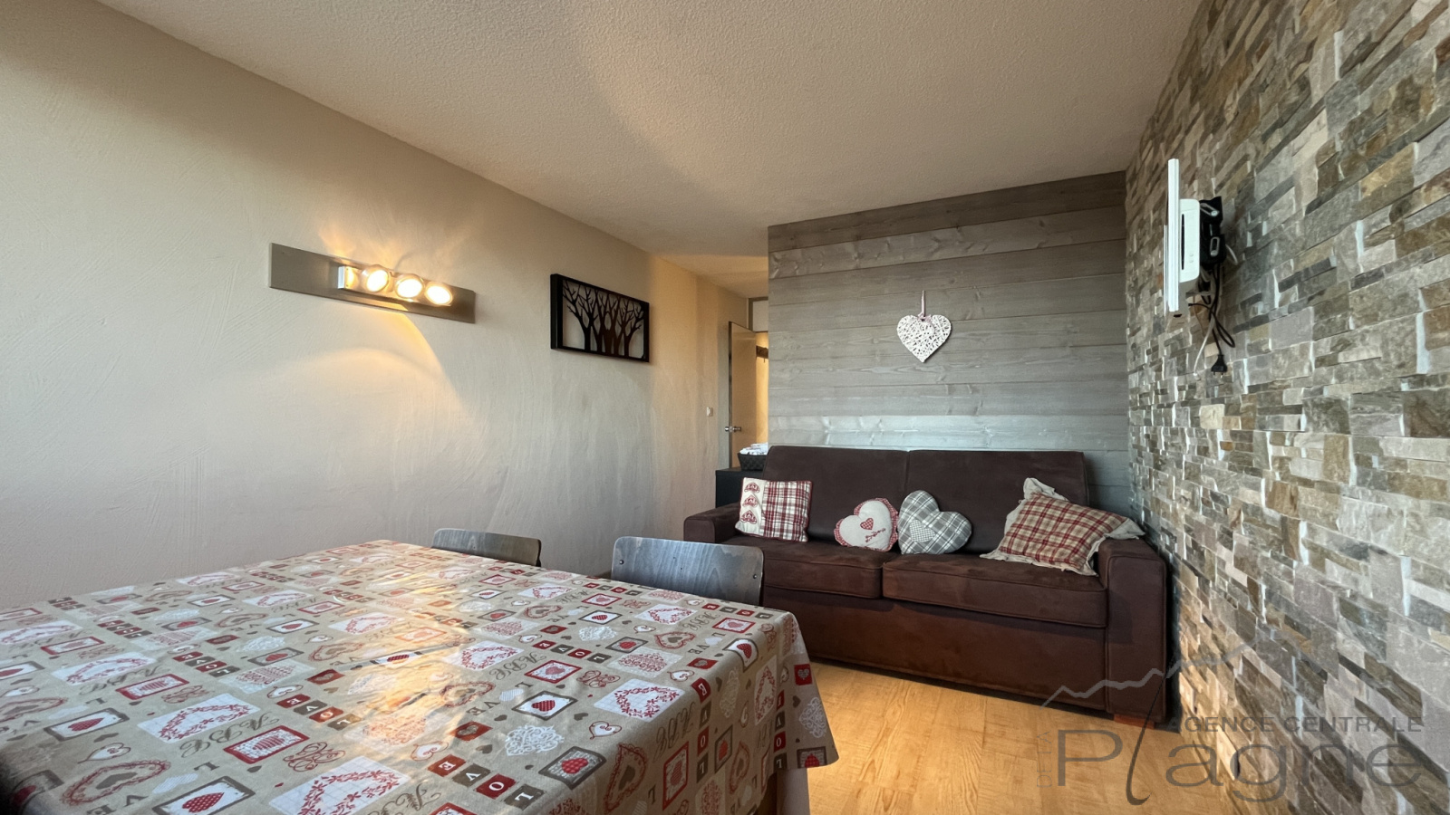Ce joli studio d'environ 26 m² rénové bénéficie d'un coin nuit et d'un balcon exposé Nord/Est avec très belle vue sur le Mont Blanc.
