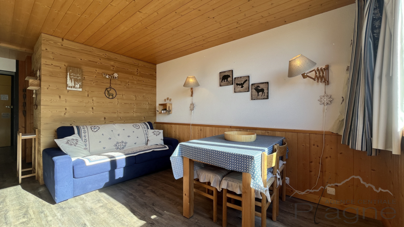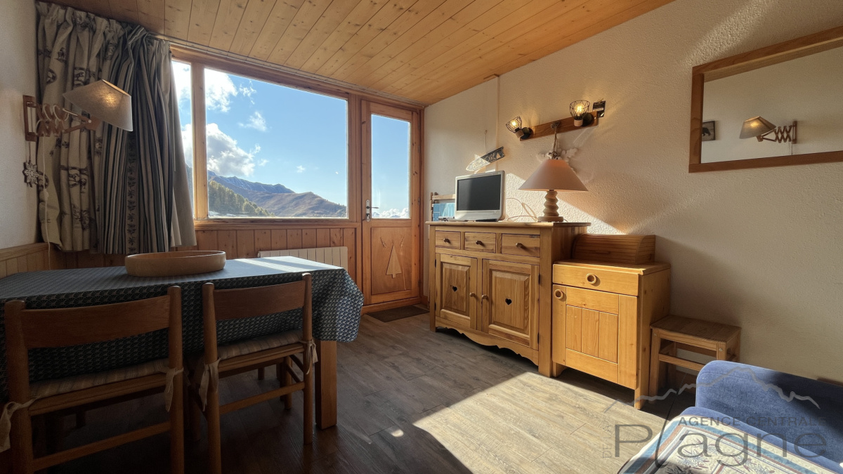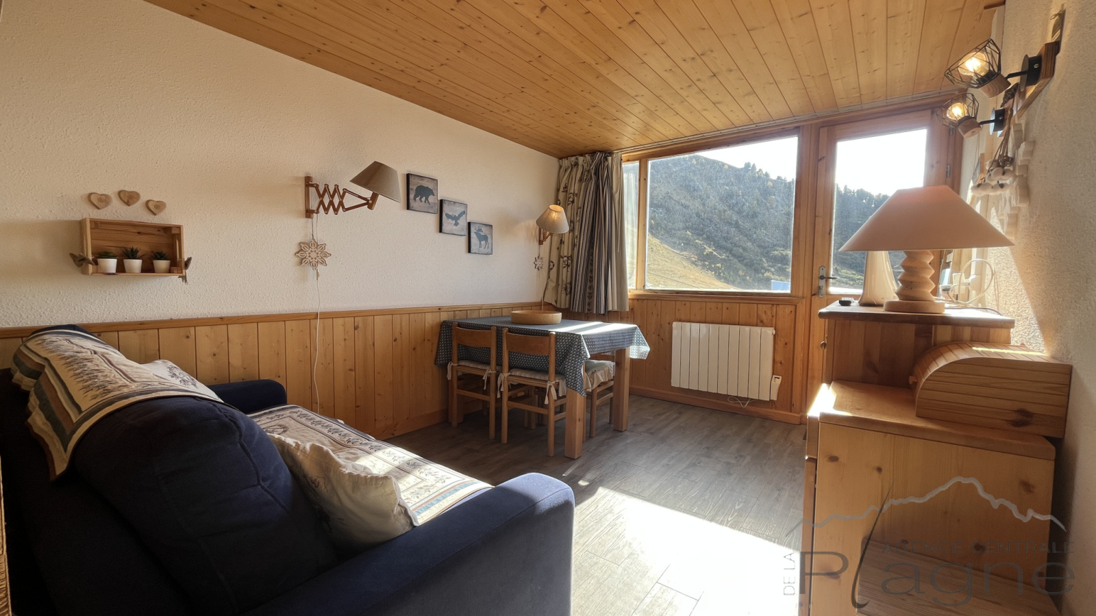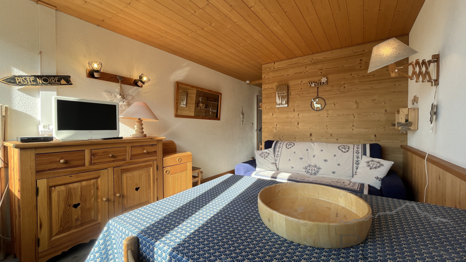 Ce studio d'environ 26 m² bénéficie d'un coin nuit et d'un balcon exposé Sud/Ouest avec vue sur les pistes.