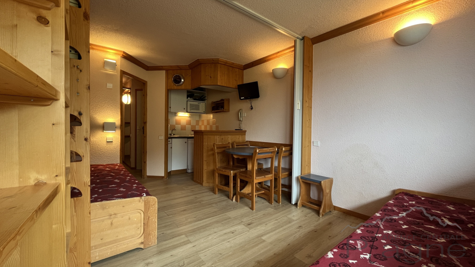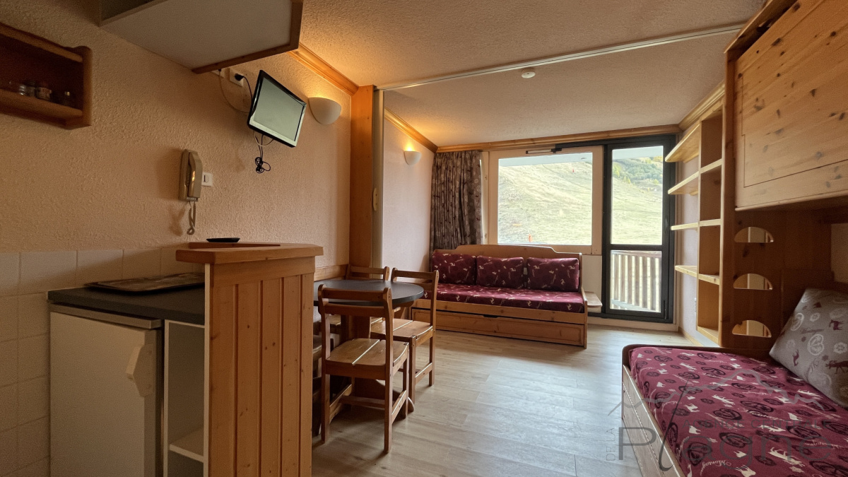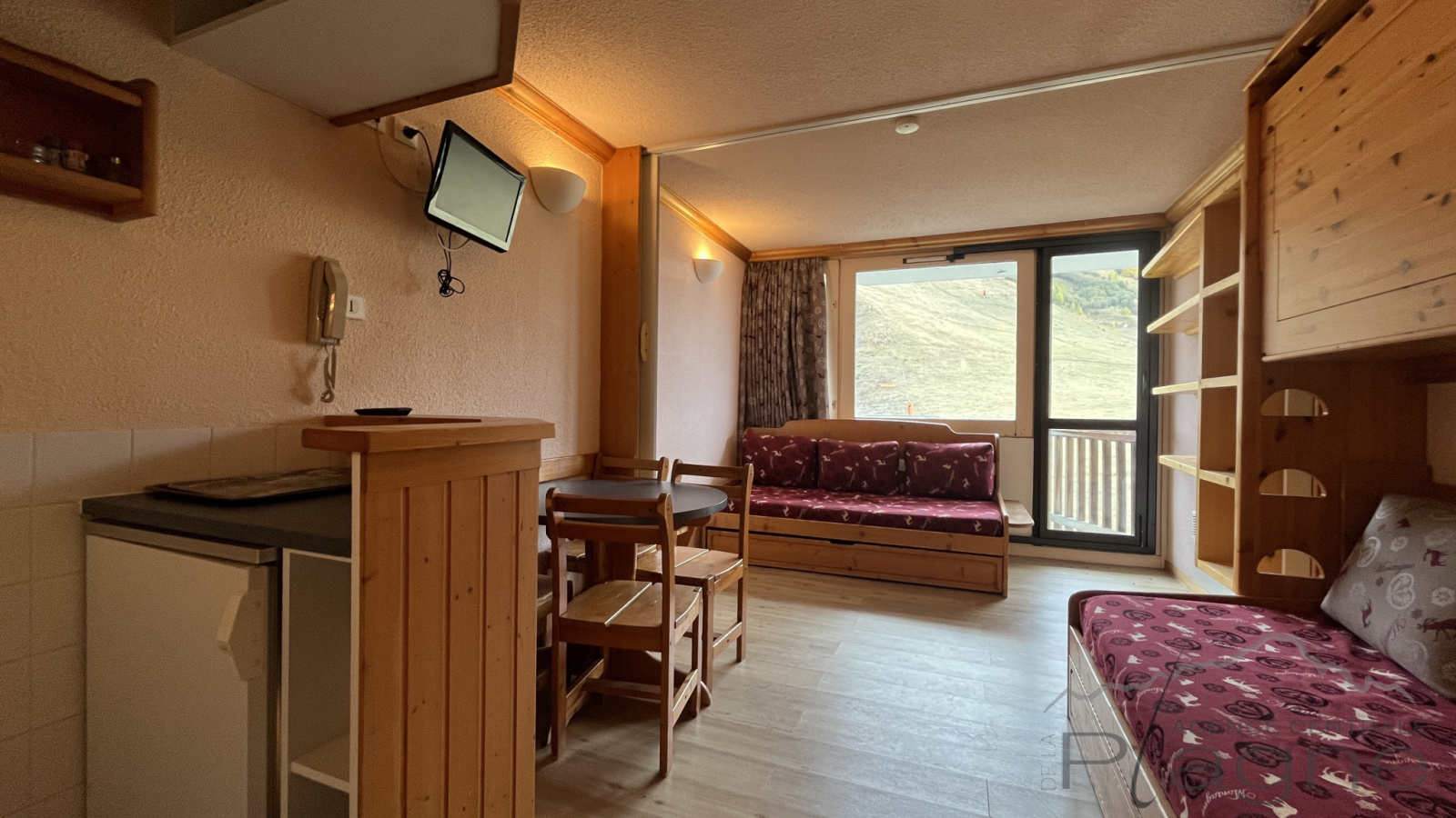 Ce joli studio d'environ 26 m² rénové bénéficie d'un balcon exposé Sud/Ouest avec vue sur les pistes.